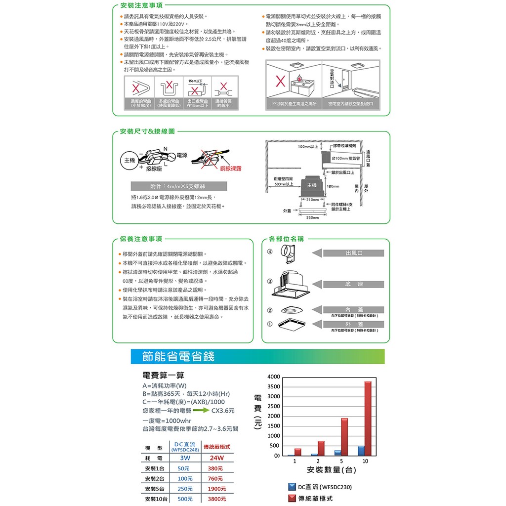 【太星電工】 喜馬拉雅-DC直流變頻換氣扇(3W) WFSDC248 通風扇 排風扇 省電 靜音 保固三年 抽風機 現貨