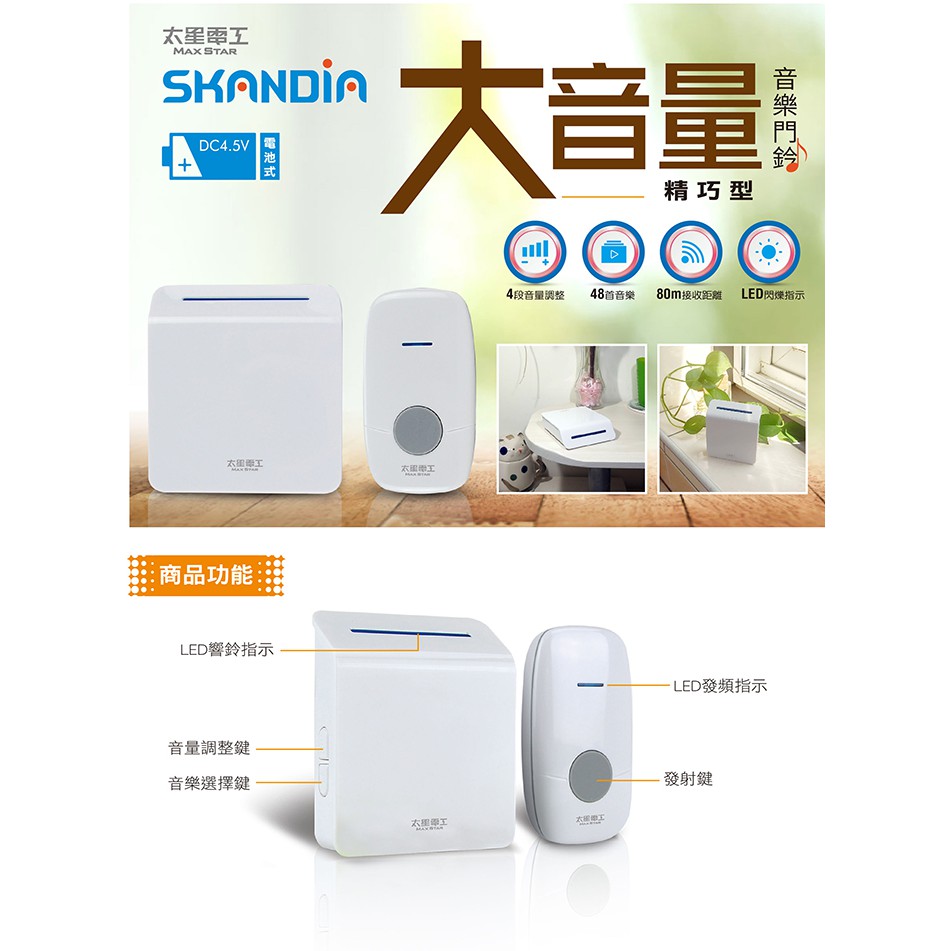 【太星電工】SKANDIA 大音量精巧音樂門鈴/電池式 DRT290D