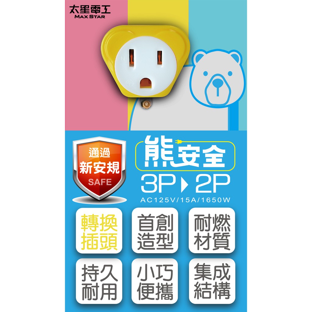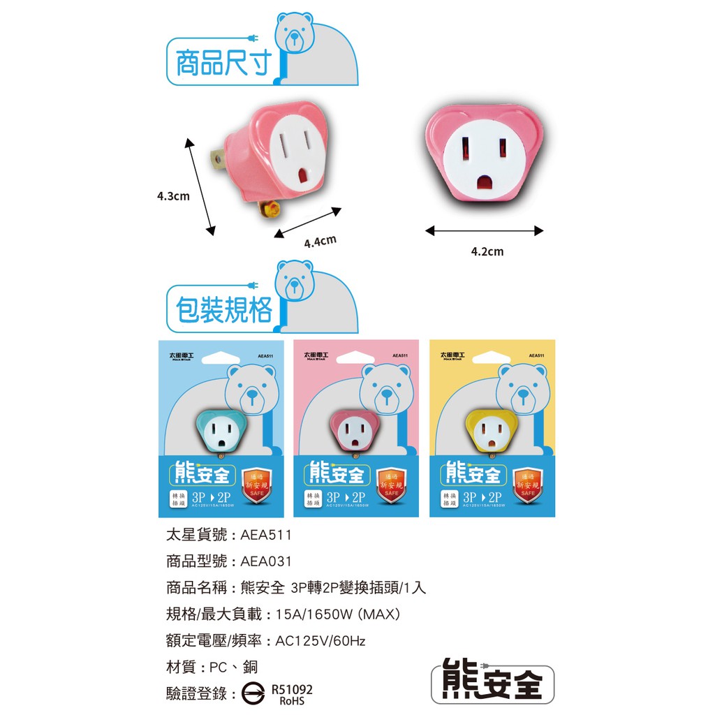 太星電工 熊安全3P轉2P變換插頭 AEA511