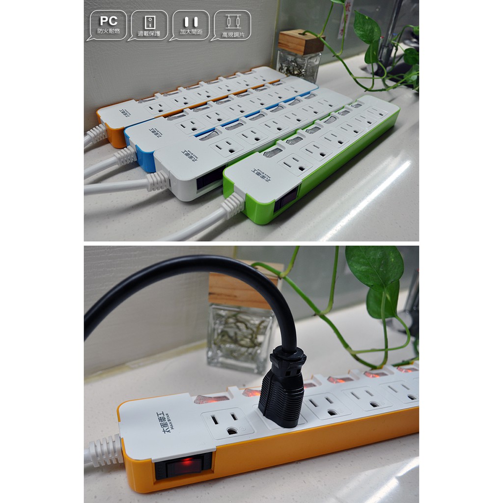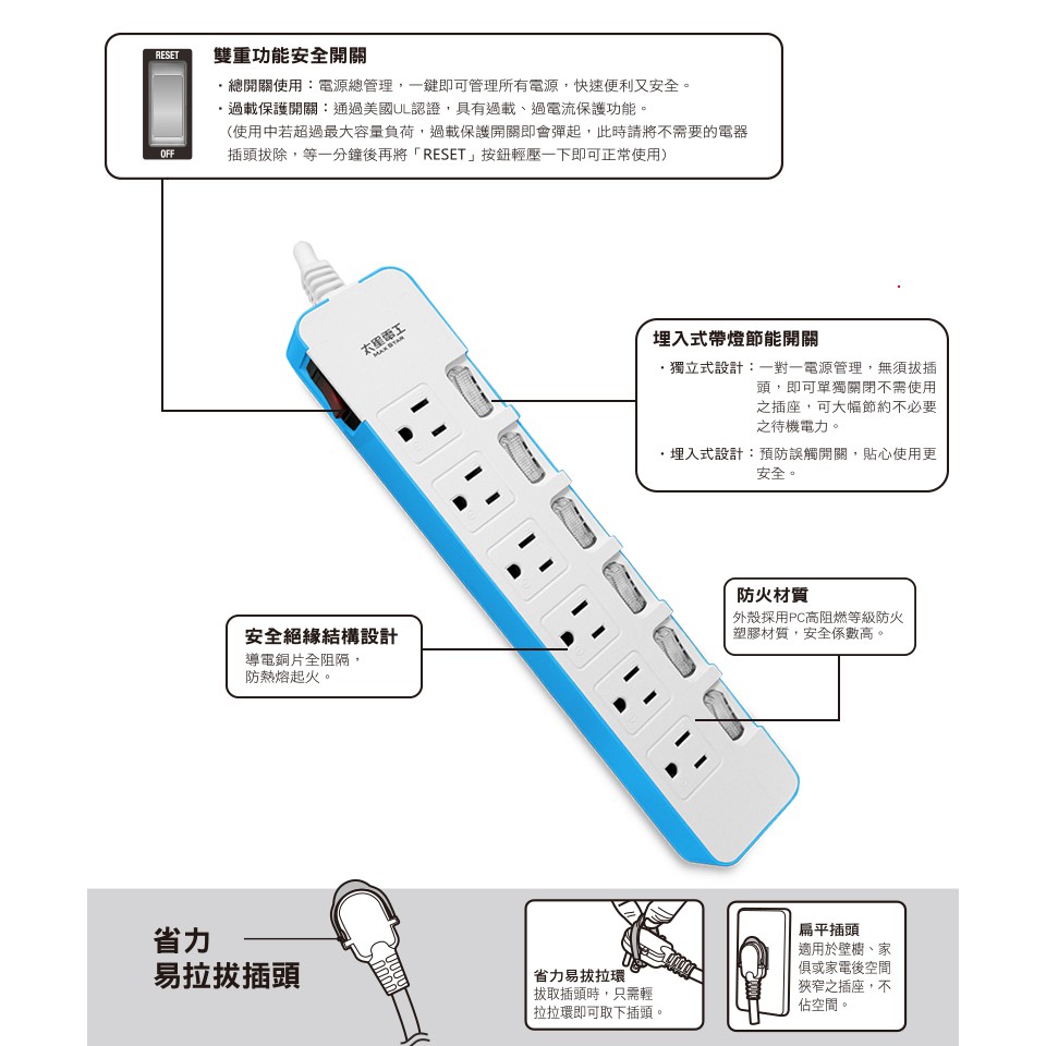 【太星電工】一發連動彩色七開六插電腦線/3P 9尺(混色) OCD76309