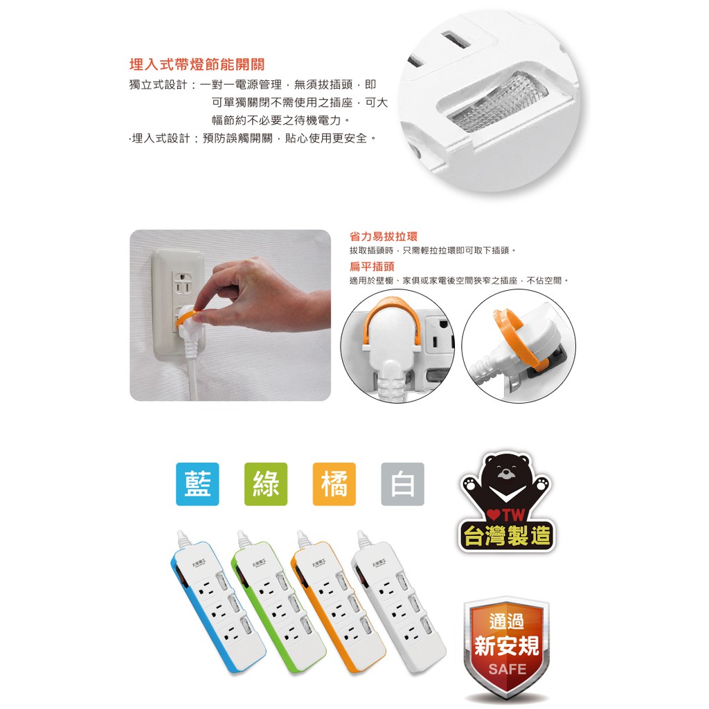 【太星電工】一發連動彩色四開三插電腦線/3P 9尺(混色) OCD43309