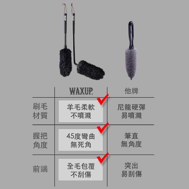 【WAXUP-羊毛輪圈刷】 純羊毛不傷輪圈 污垢不回噴 彎曲設計 內側死角都好刷洗 輪框刷 鋼圈刷 鋁圈刷