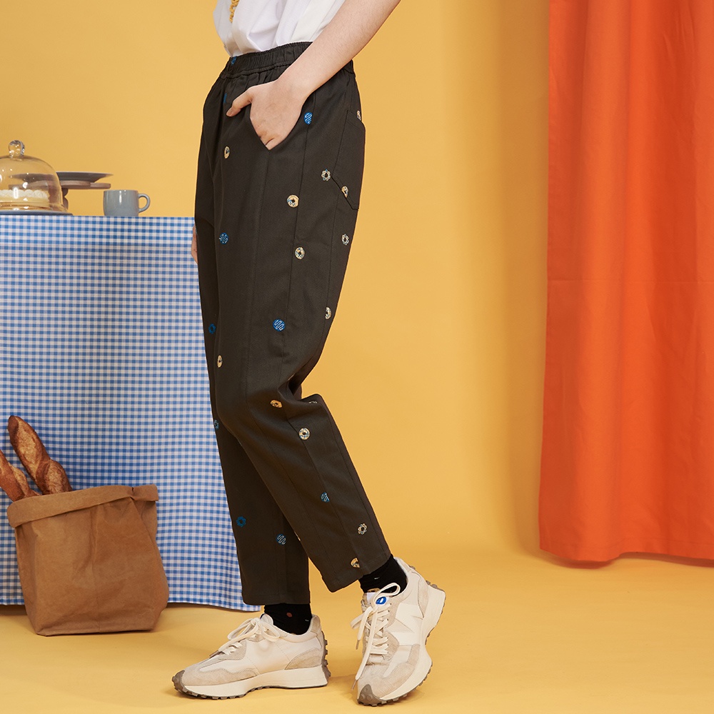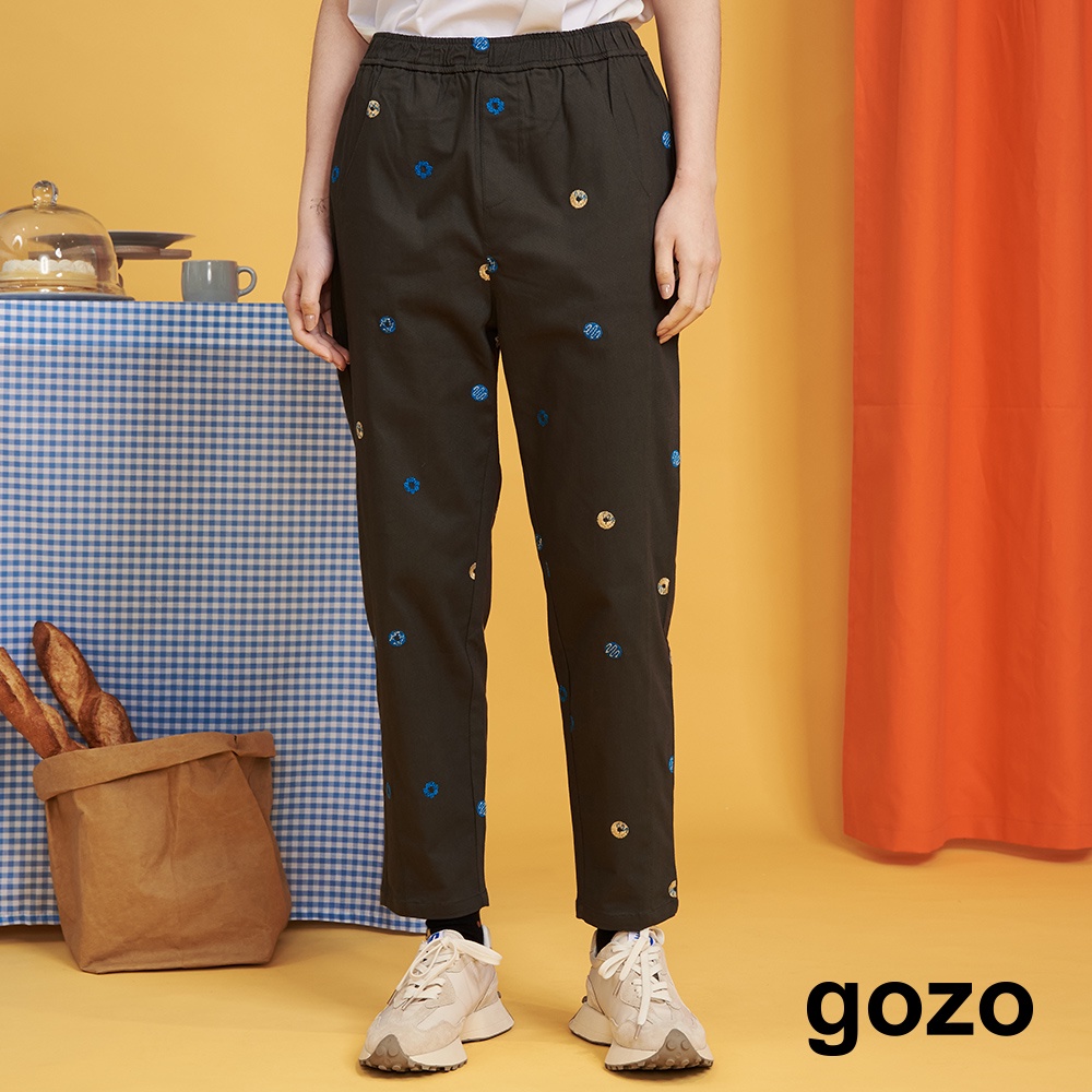 【gozo】甜甜圈繡花彈性小腳褲(深綠_M/L)|女裝 顯瘦 休閒