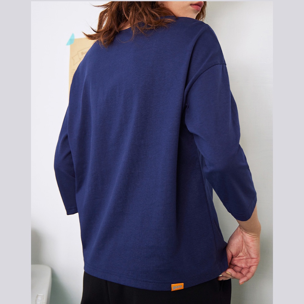 【gozo】簡約方領七分袖上衣(深藍/綠色_F)|女裝 方領 百搭