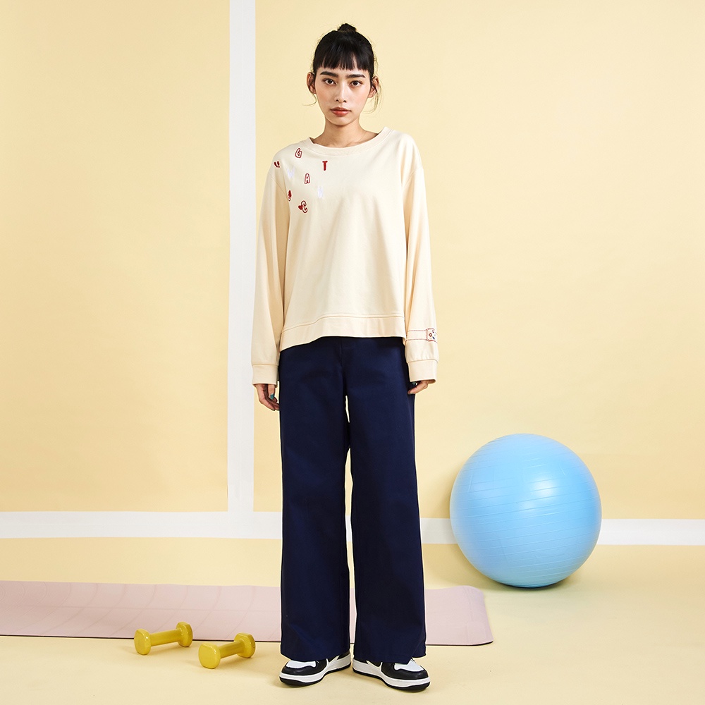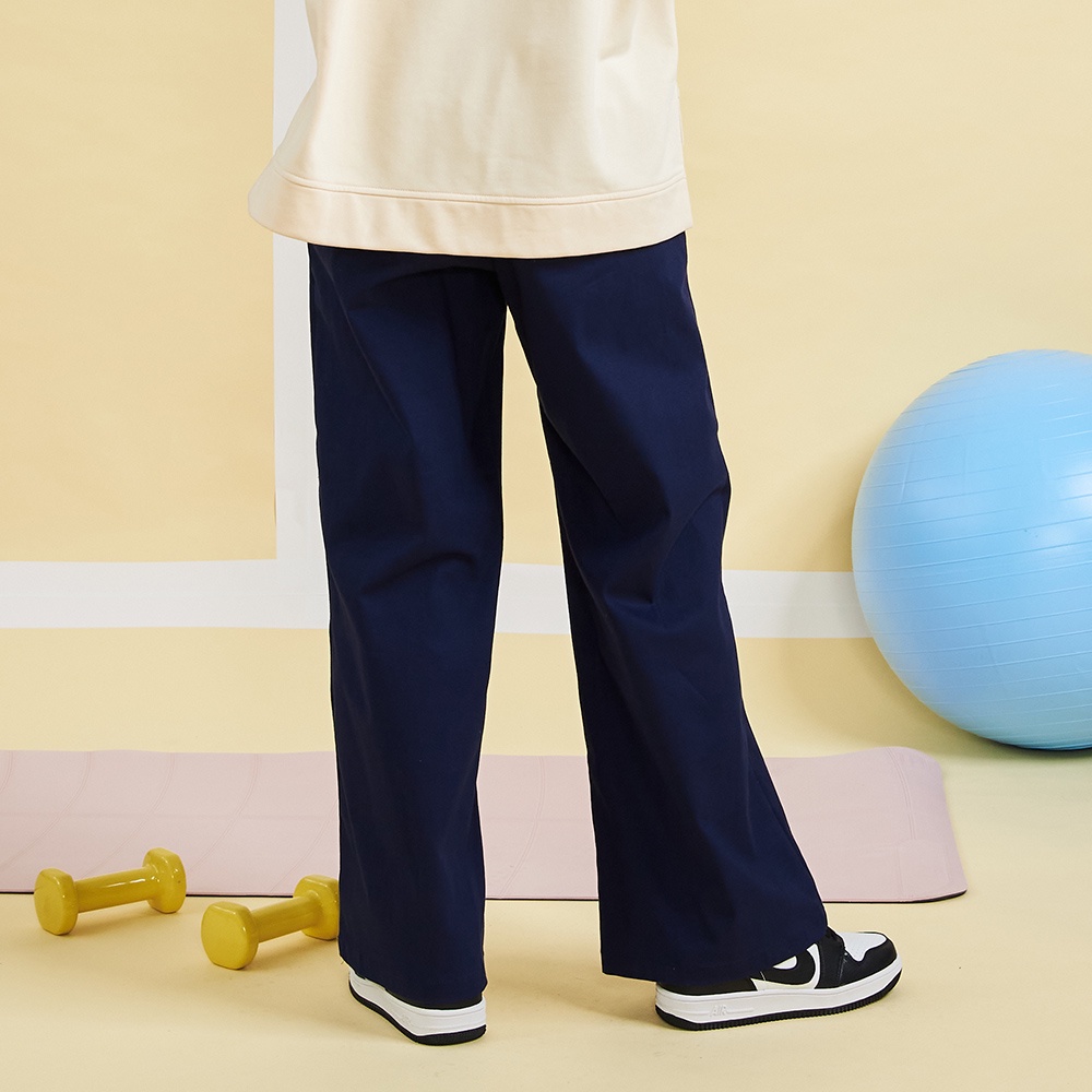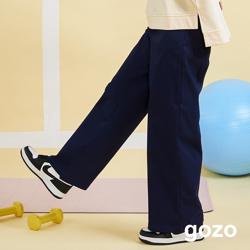 【gozo】率性後鬆緊直筒褲(深藍_L)|女裝 顯瘦 百搭