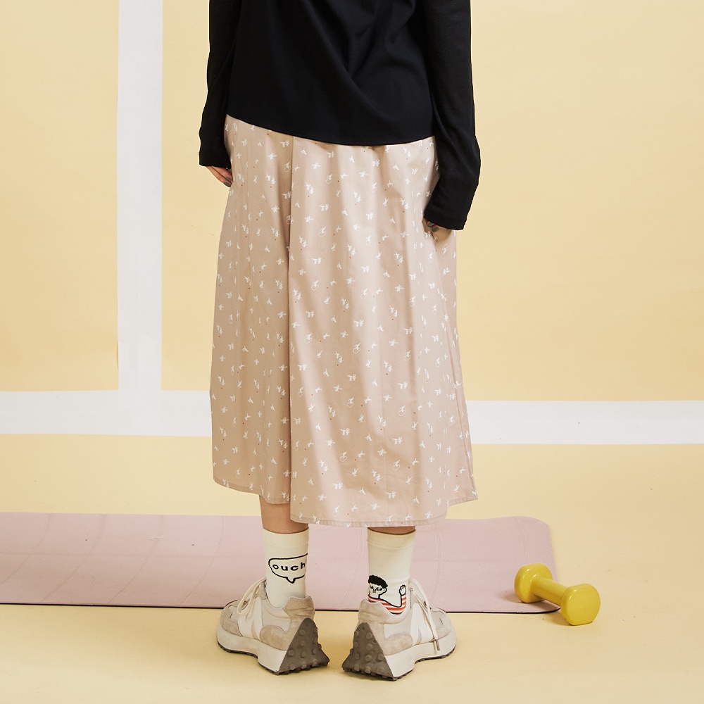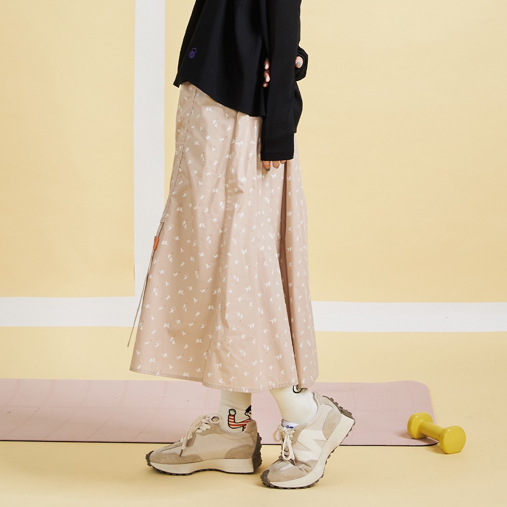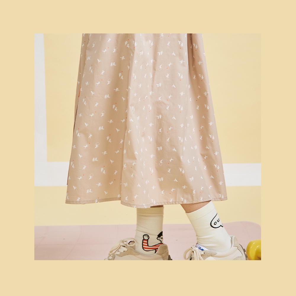 【gozo】運動小貓咪印花長裙(淺卡其_F)|女裝 百搭 休閒