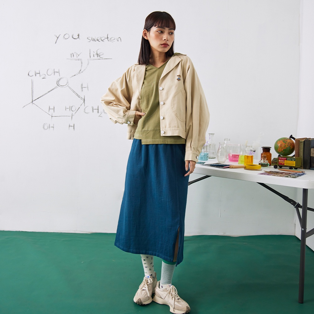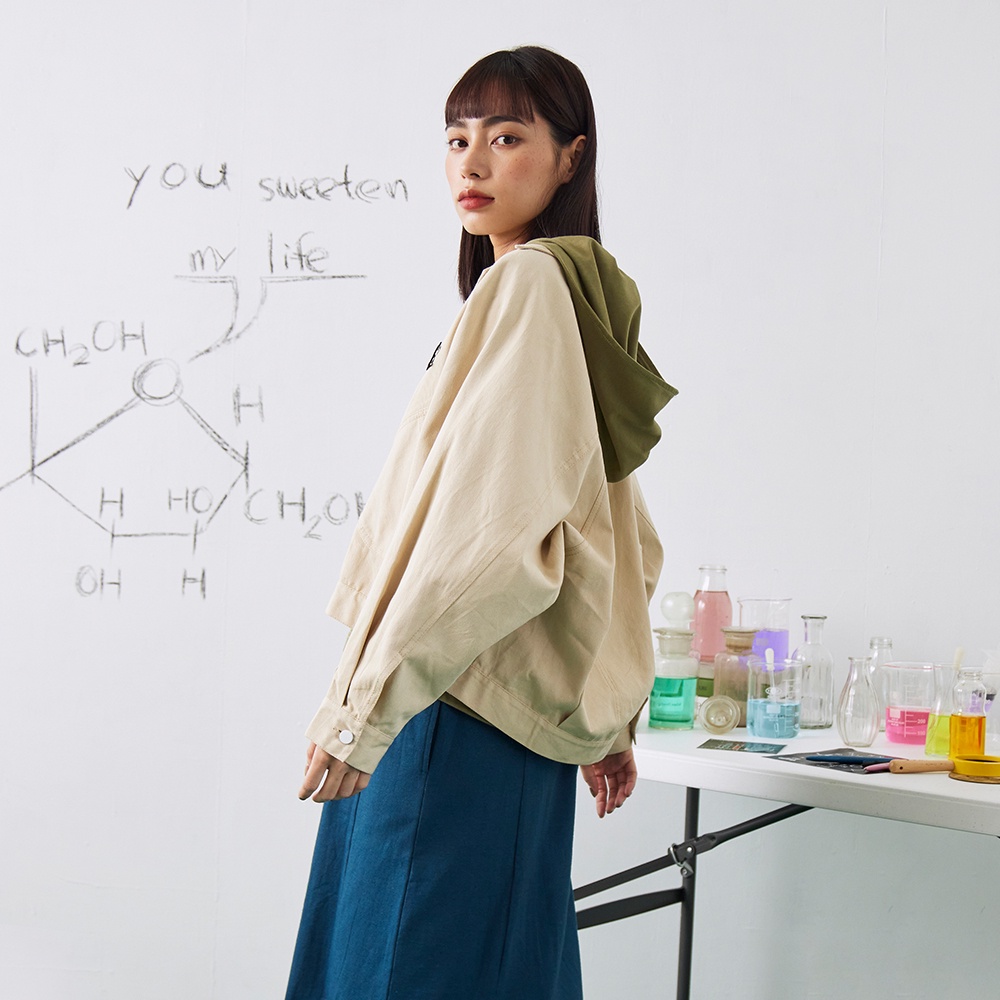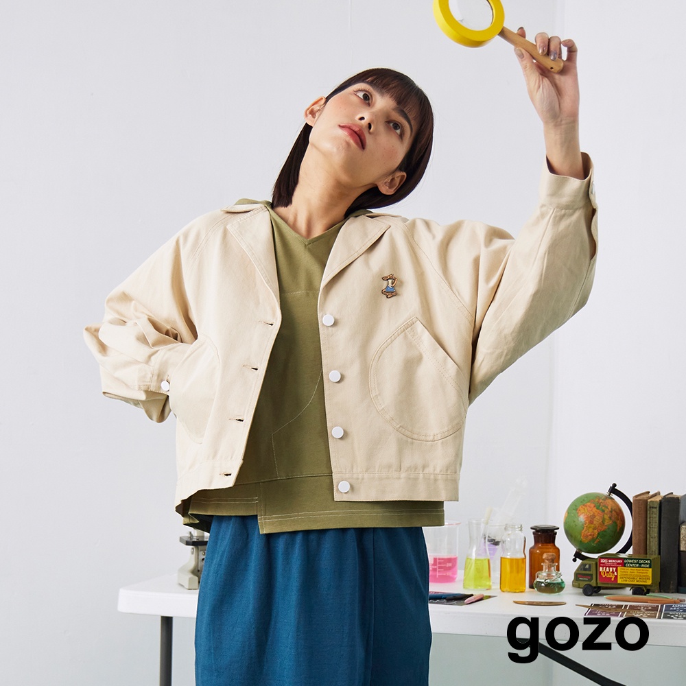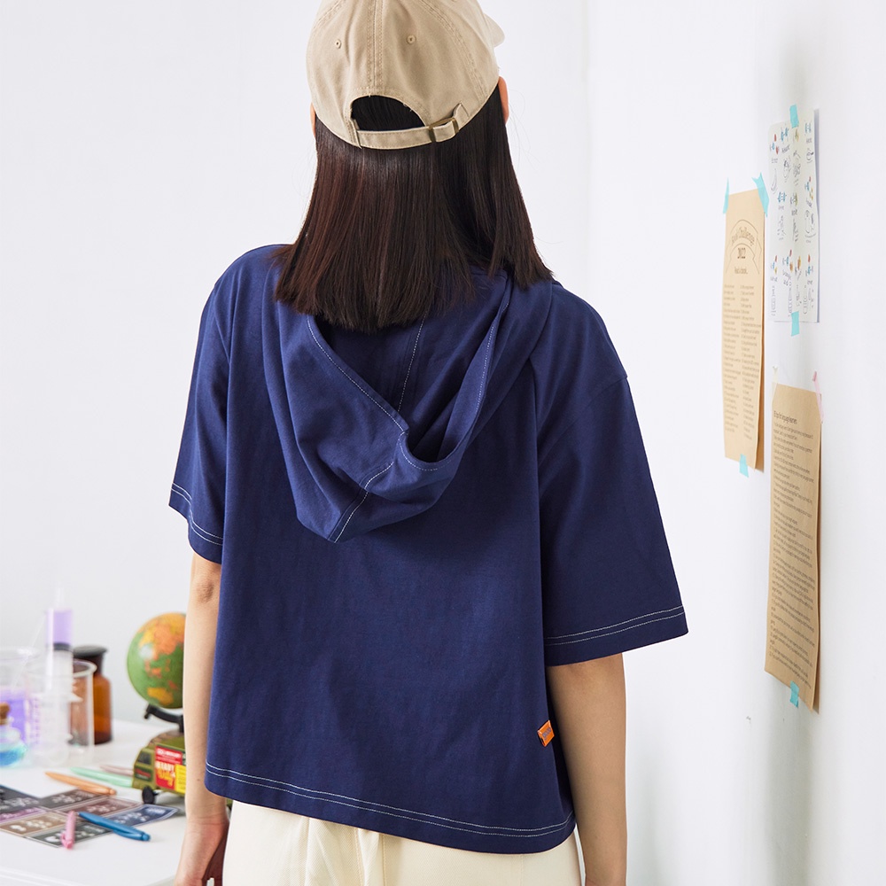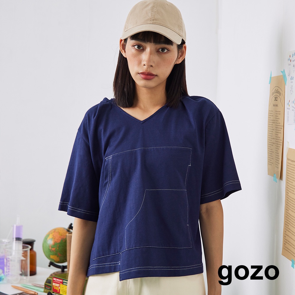 【gozo】短版壓線不對稱連帽短袖T(深藍/綠色_F)|女裝 V領 休閒