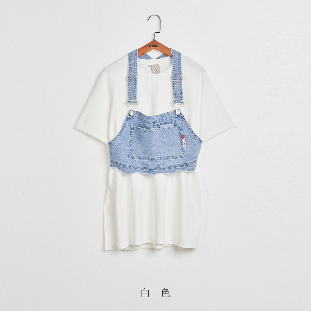 【gozo】兩件式吊帶牛仔背心T恤(黑色/白色_F) | 女裝 圓領 百搭