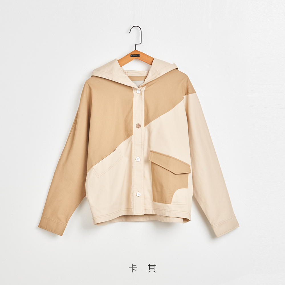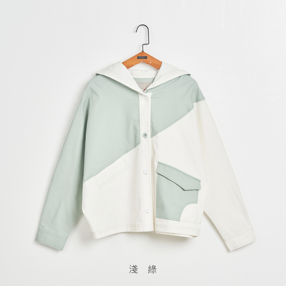 【gozo】不對稱口袋配色剪接連帽外套(卡其/淺綠_F) | 女裝 顯瘦 休閒