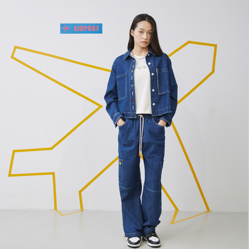 【gozo】旅行繡花不收邊牛仔短版襯衫外套(藍色/深藍_M/L) | 牛仔 修身 百搭