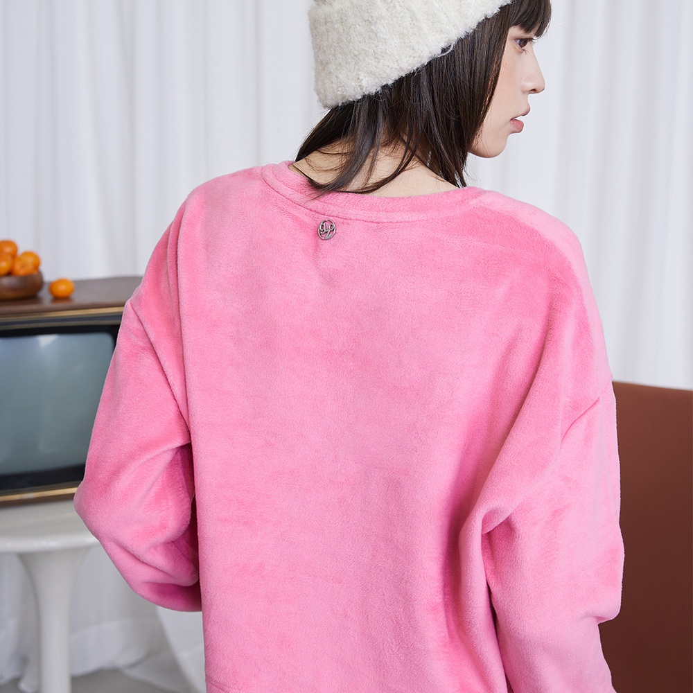 【gozo】穿羽絨服的雪人毛毛短版大學T(深咖/粉色_F) | 女裝 圓領 保暖