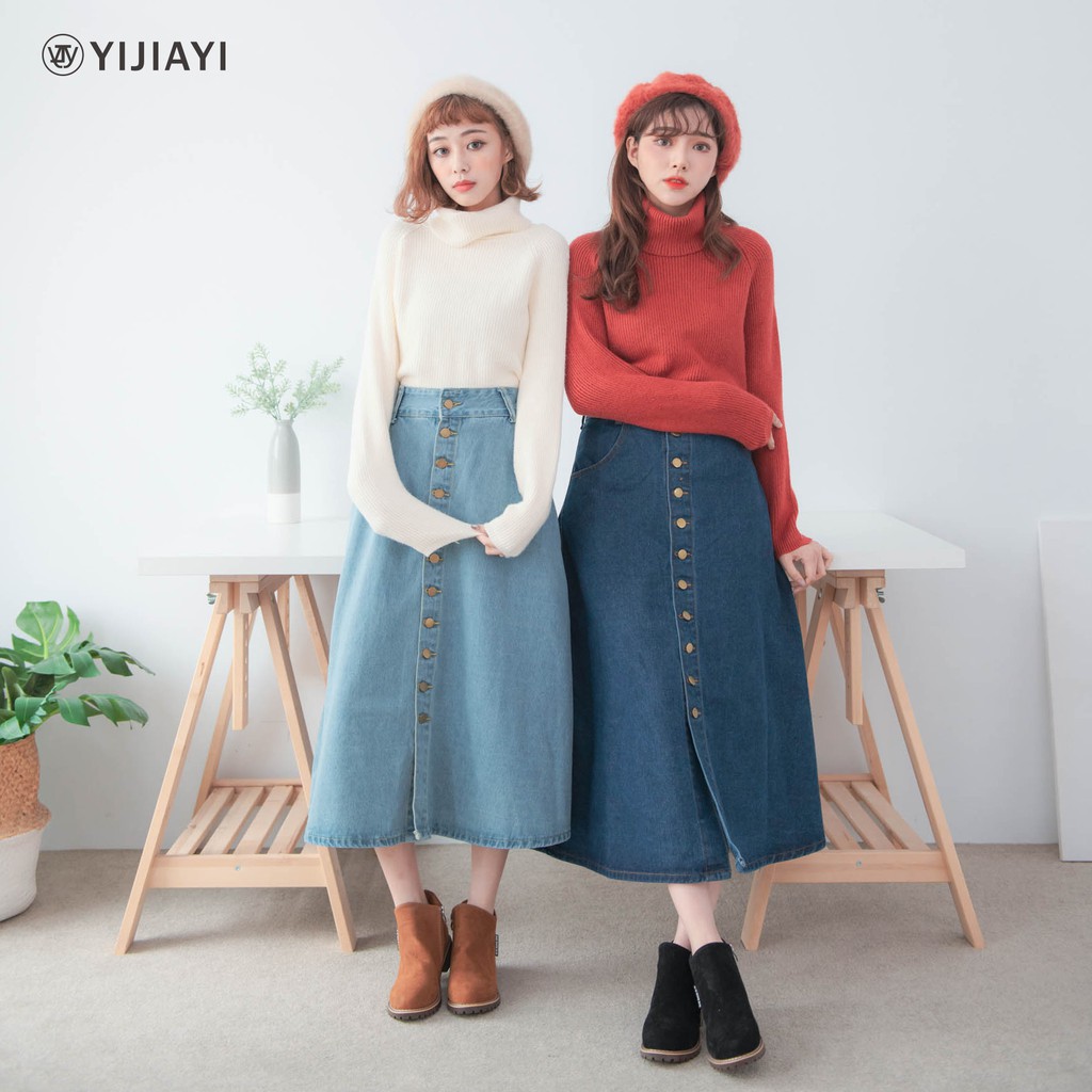 【YIJIAYI】爆款 牛仔 A字排釦 激瘦款 長裙 【S廠】(S-S202)