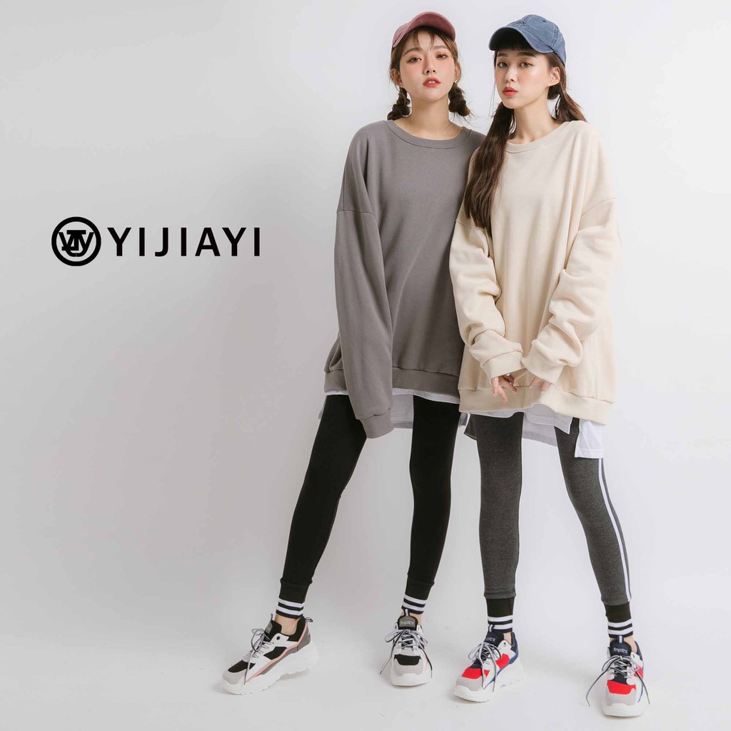 【YIJIAYI】大學T 長袖上衣 長袖T恤 刷毛 寬鬆 大尺碼【S廠】(S-T1314)