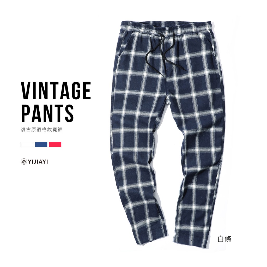 《預購7天》【YIJIAYI】格紋 寬褲 復古 原宿 休閒 長褲【A廠】(A-88925)