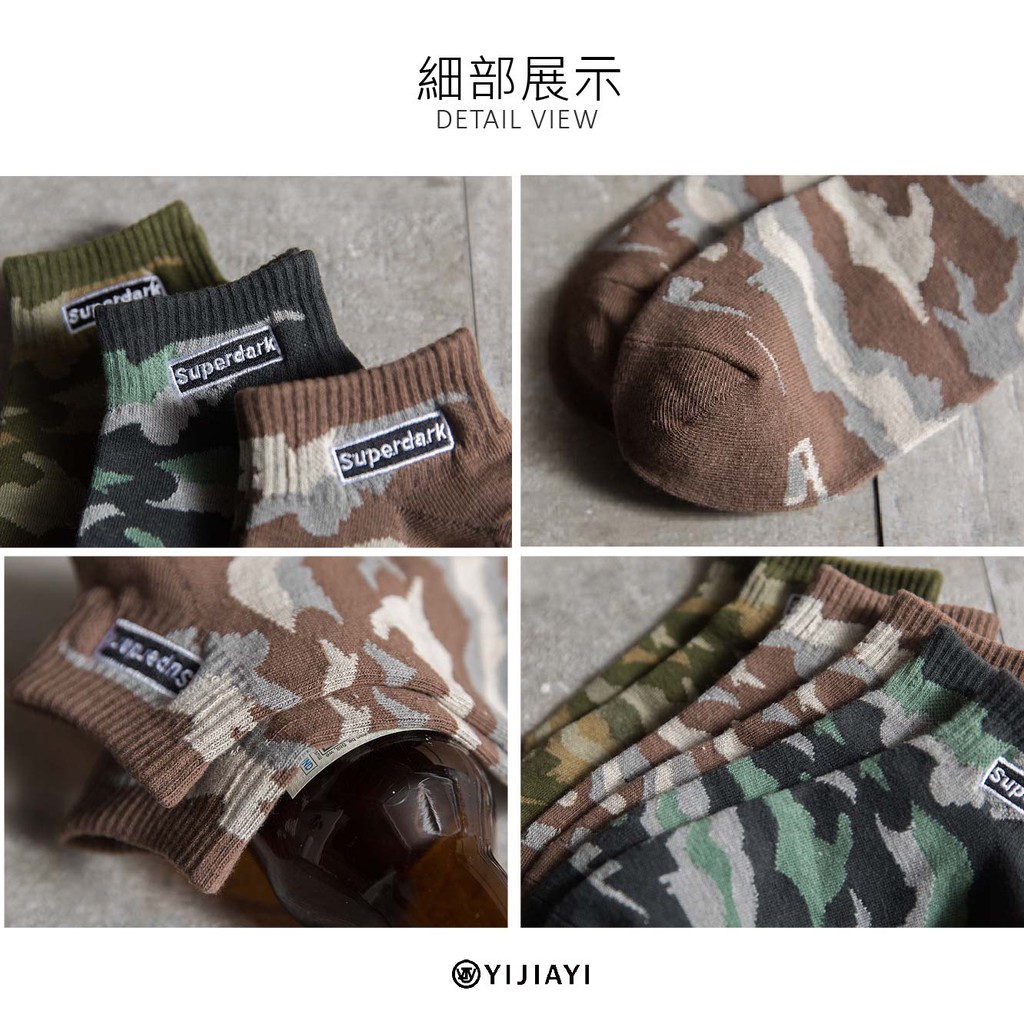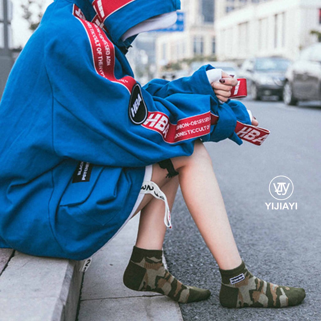 【YIJIAYI】 迷彩造型 歐美街頭 嘻哈潮流 學院風 短襪 棉襪 (B0081)