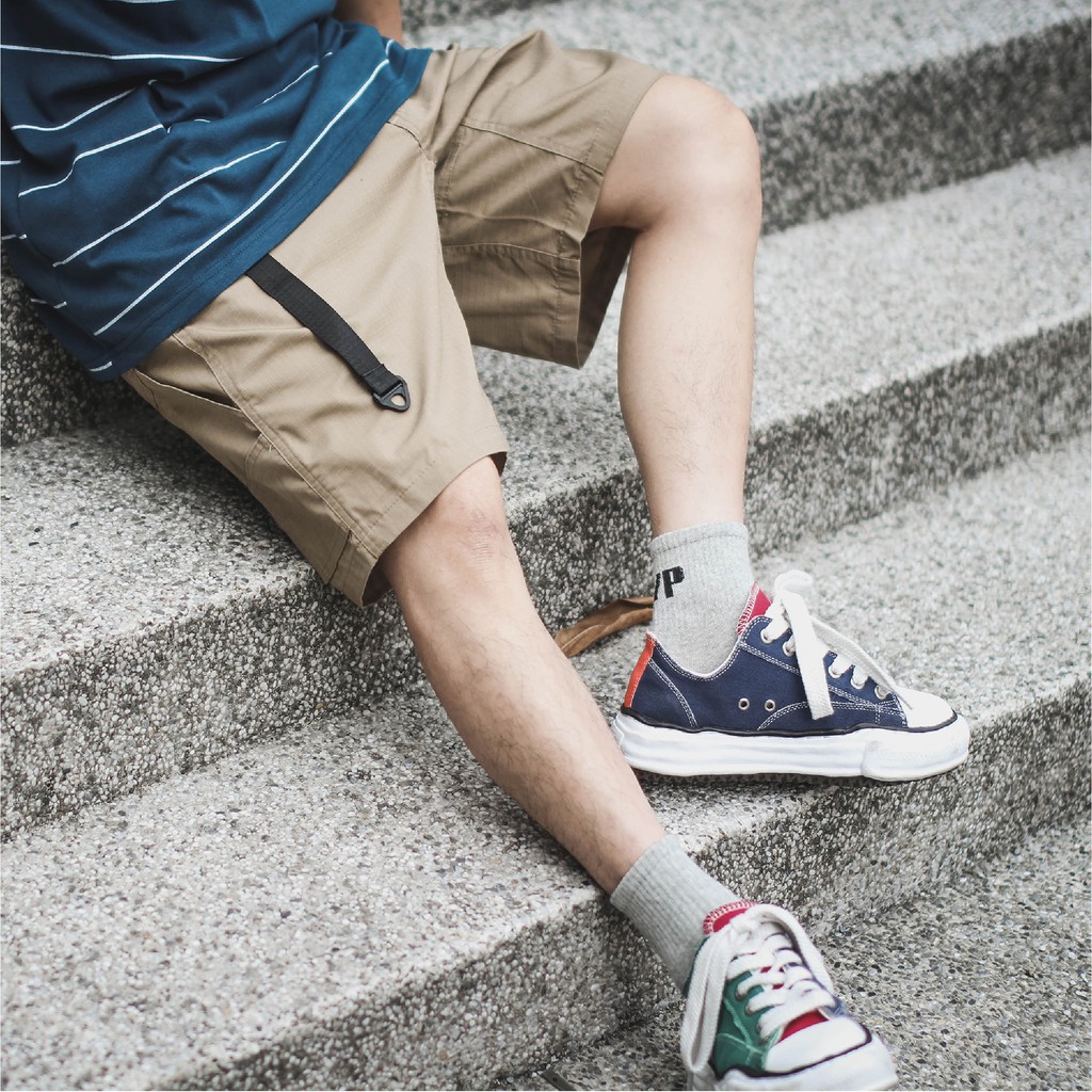 【YIJIAYI】抗撕裂多剪裁工裝格紋速乾布料工裝短褲 工裝短褲 腰帶 格紋 速乾 休閒短褲 鬆緊(004)