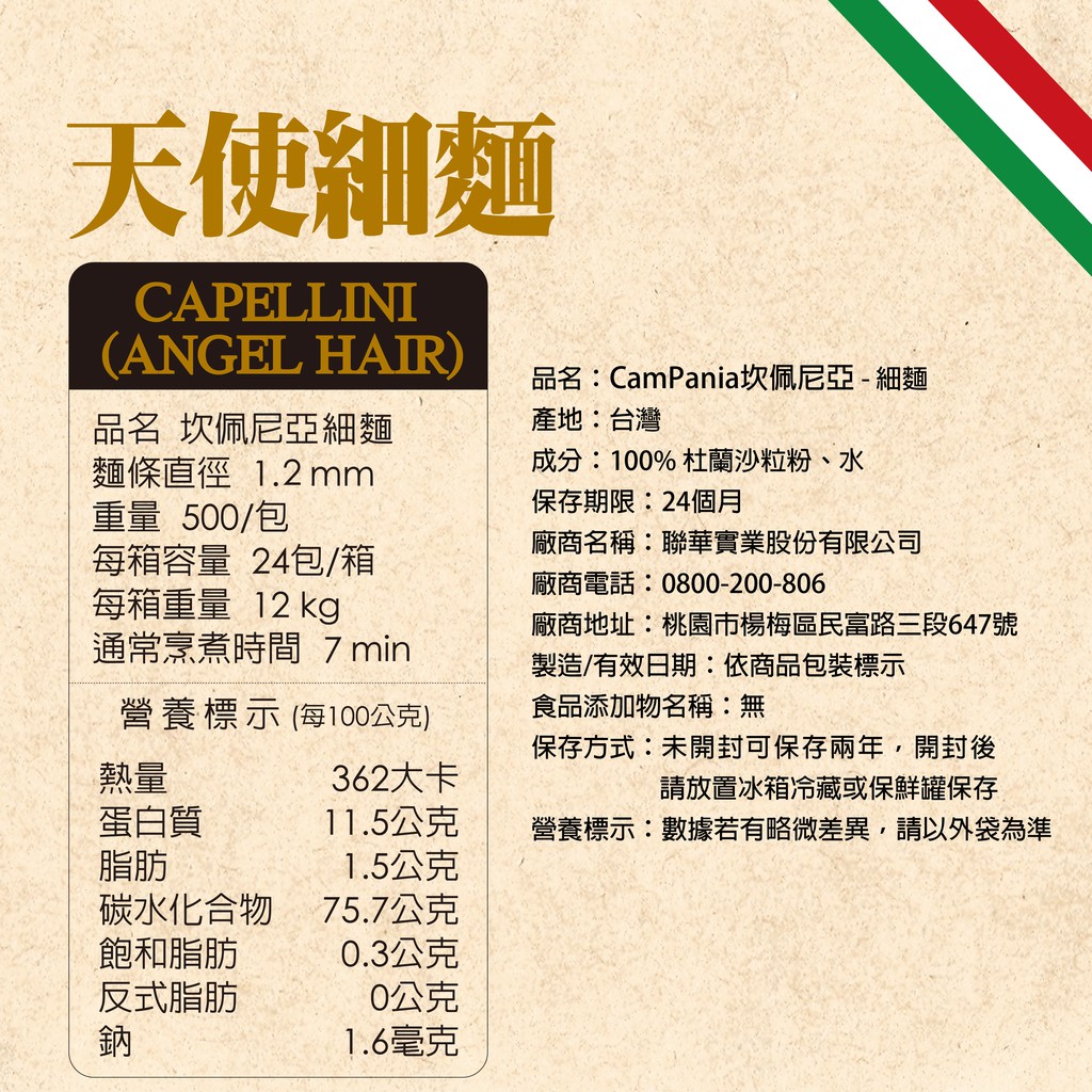 【CamPania義大利麵】坎佩尼亞天使麵(1.2mm) /500g