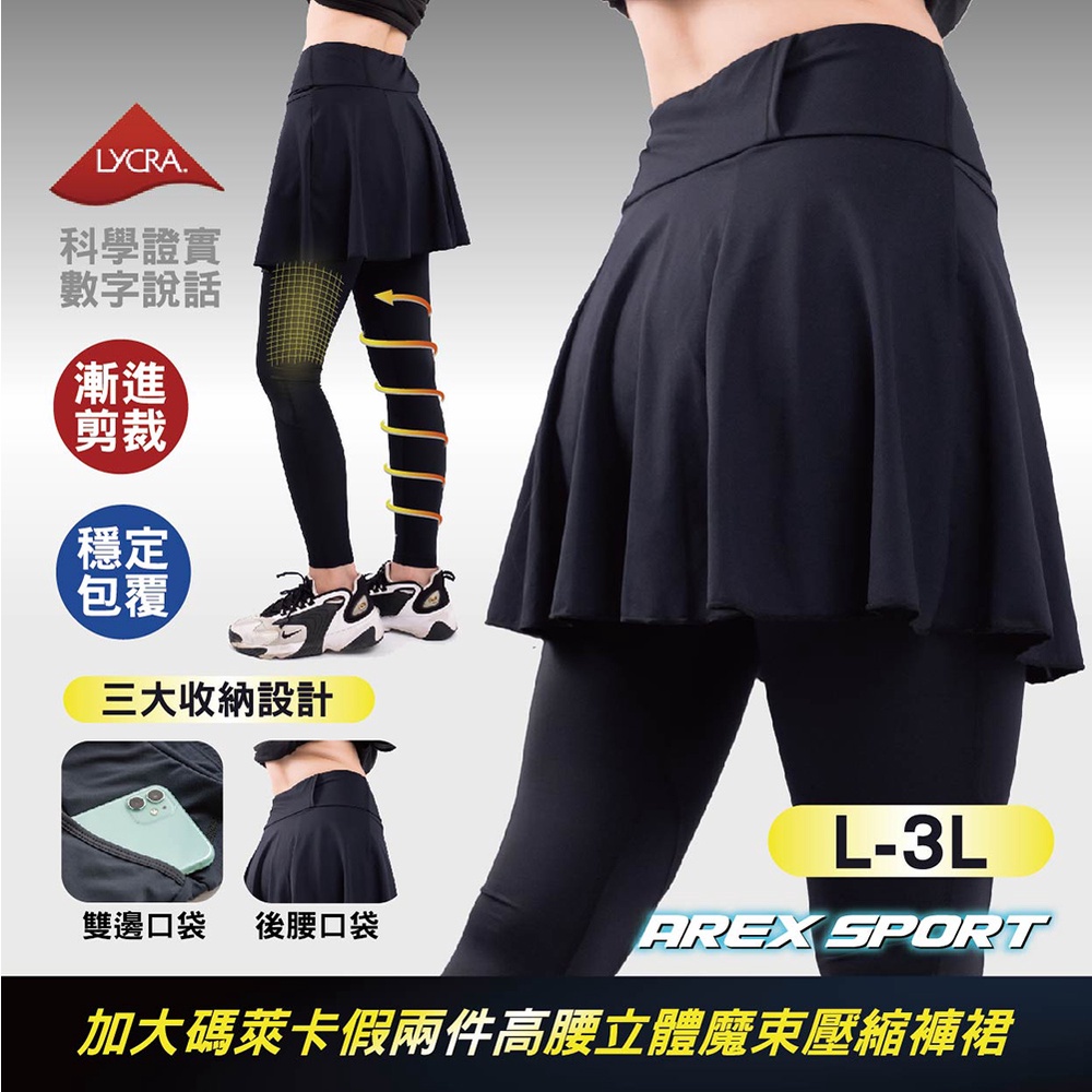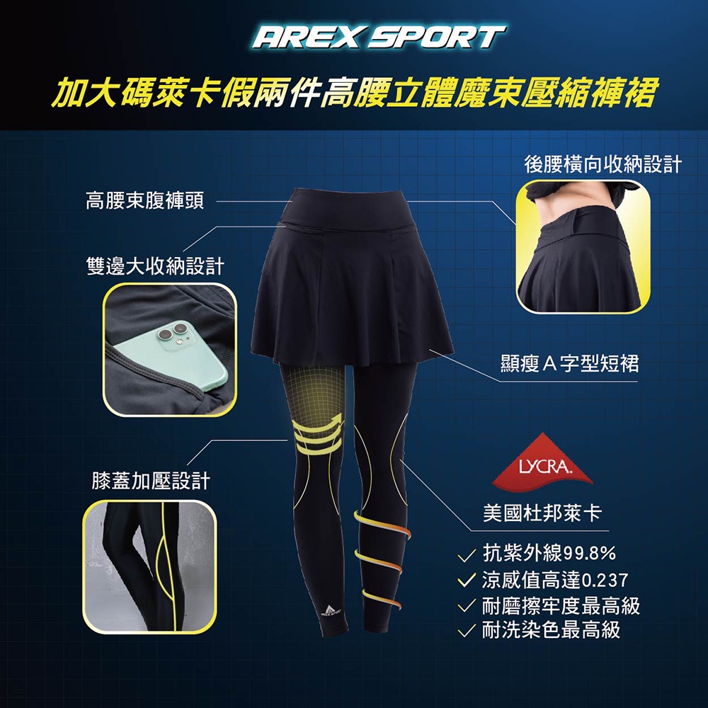 【AREXSPORT】AS-9353 褲裙 大尺碼壓力褲裙 加大壓縮褲 假兩件壓縮褲 高腰壓縮褲 登山壓縮褲 馬拉壓縮褲