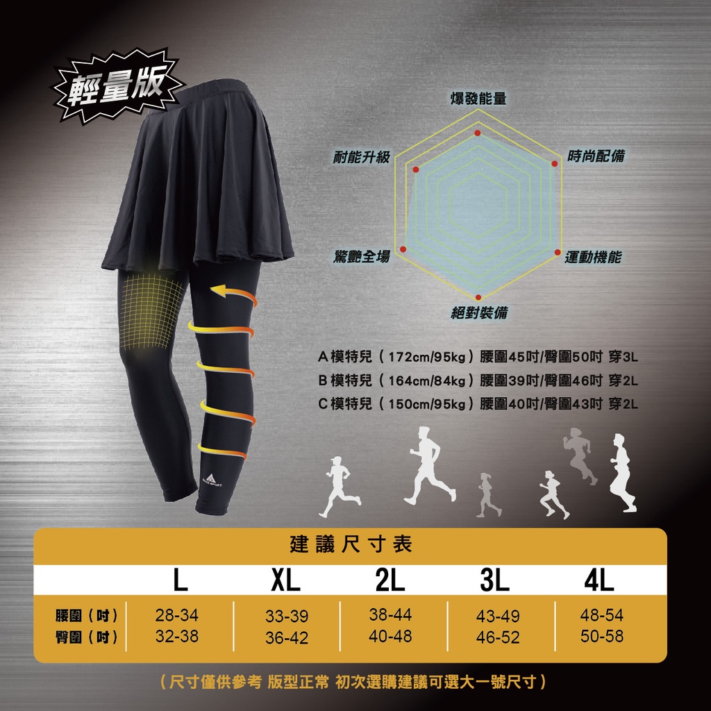 【AREXSPORT】AS-9565 加大壓力褲裙 升級版輕量壓縮基礎型高腰機能假兩件運動褲裙L-4L