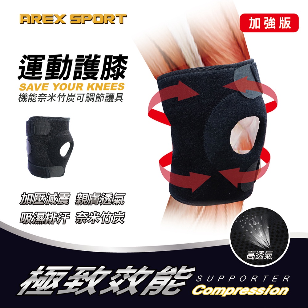 【AREXSPORT】AS-3405 登山護膝 台灣製現貨 運動護膝支撐護膝 竹炭護膝三節型可調節(單支) 銀髮族護膝