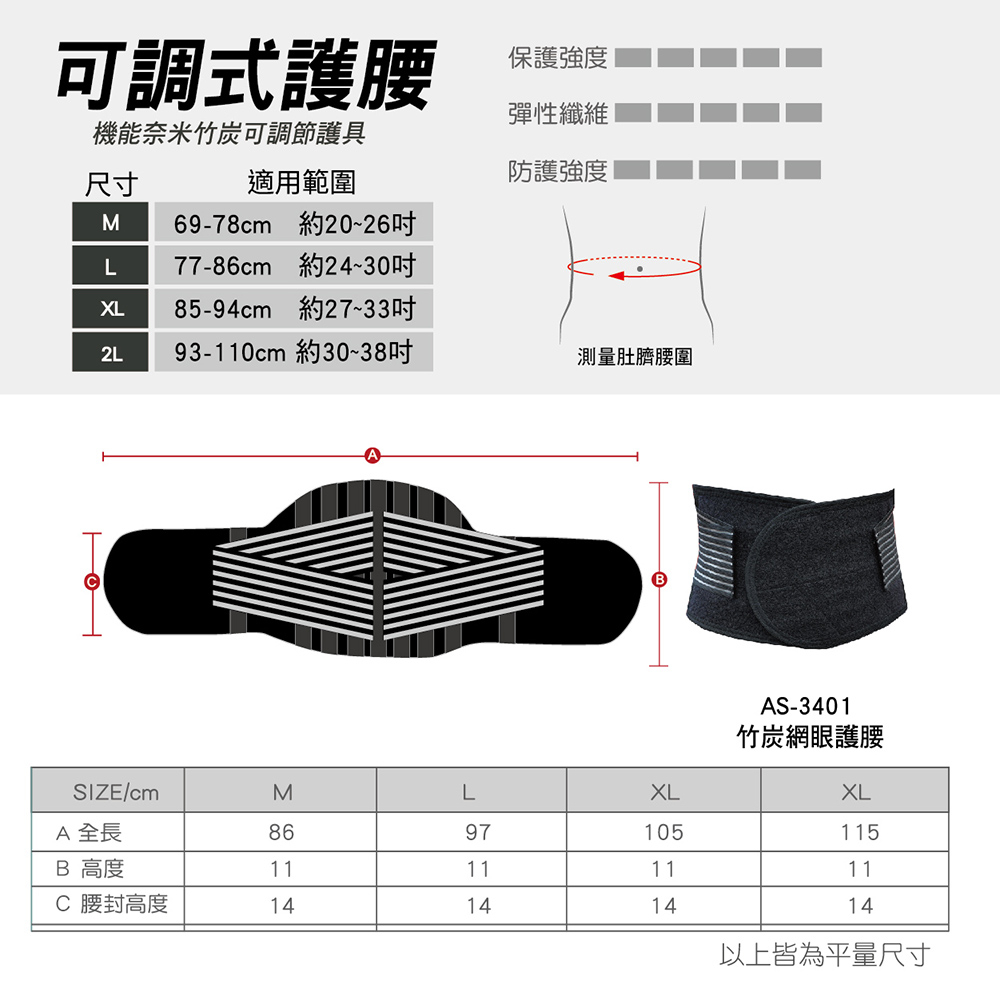 【AREX SPORT】AS-3401 竹炭護腰 運動護腰 專業護腰 加大護腰 工作護腰 透氣護腰 束腰帶 台灣製