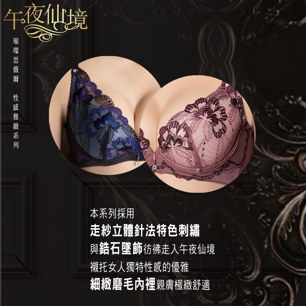 SWEAR 思薇爾 午夜仙境 系列 B-E罩 蕾絲 刺繡 集中包覆 女 內衣 (黑色)