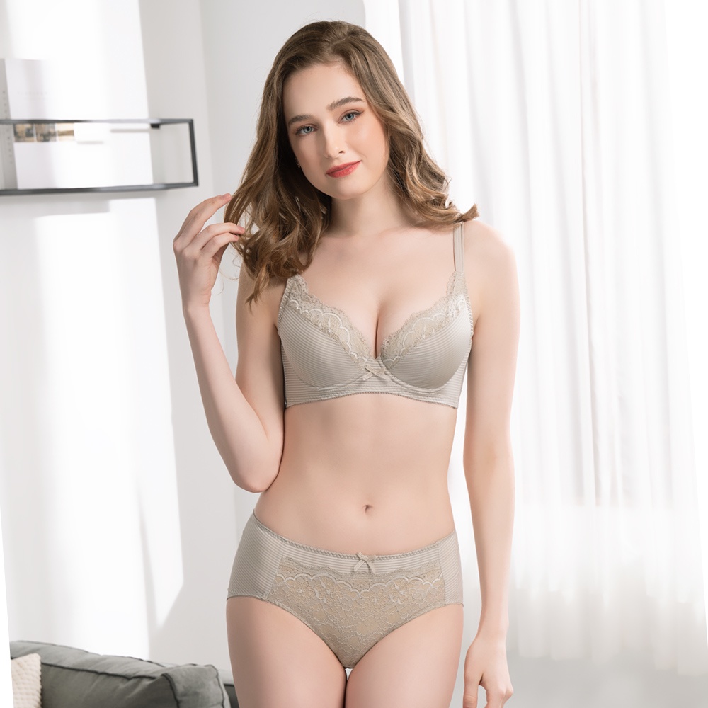 SWEAR 思薇爾 沁涼Bra 系列 M-XXL 蕾絲 中腰 三角 女內褲 (沙色綠)