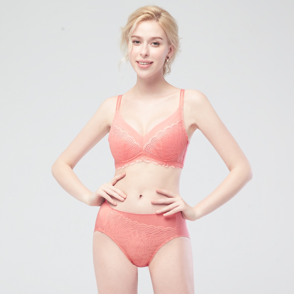 SWEAR 思薇爾 花羽夏戀系列 M-3XL 無鋼圈 蕾絲 包覆 女內衣 (銀膚粉)