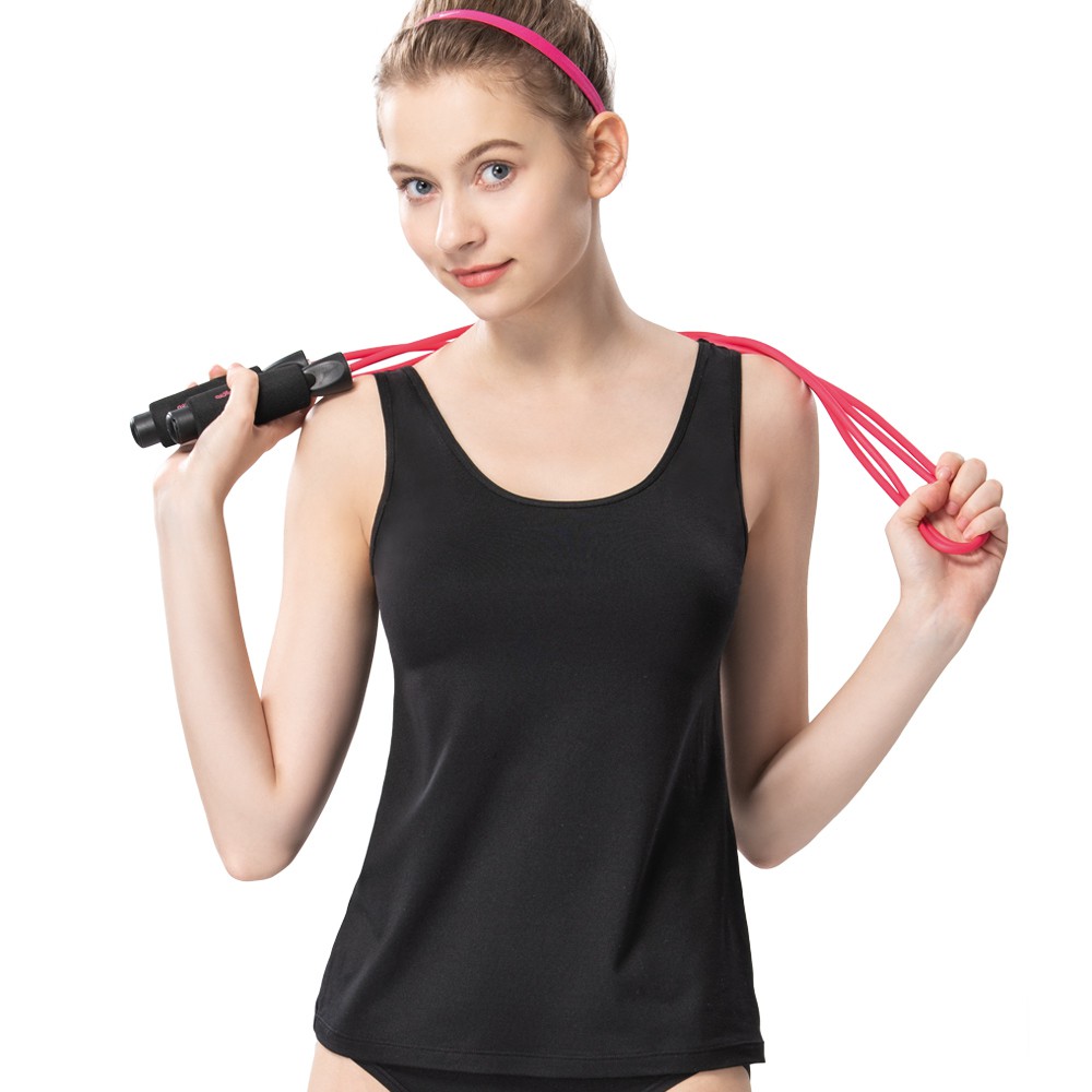 SWEAR 思薇爾 E-SOFT系列M-XXL素面寬肩帶圓領長背心(黑色)