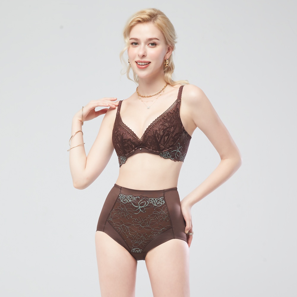 SWEAR 思薇爾 撩波 芙蓉光影系列 M-XXL 蕾絲 高腰 三角 飾體褲 (栗子棕)