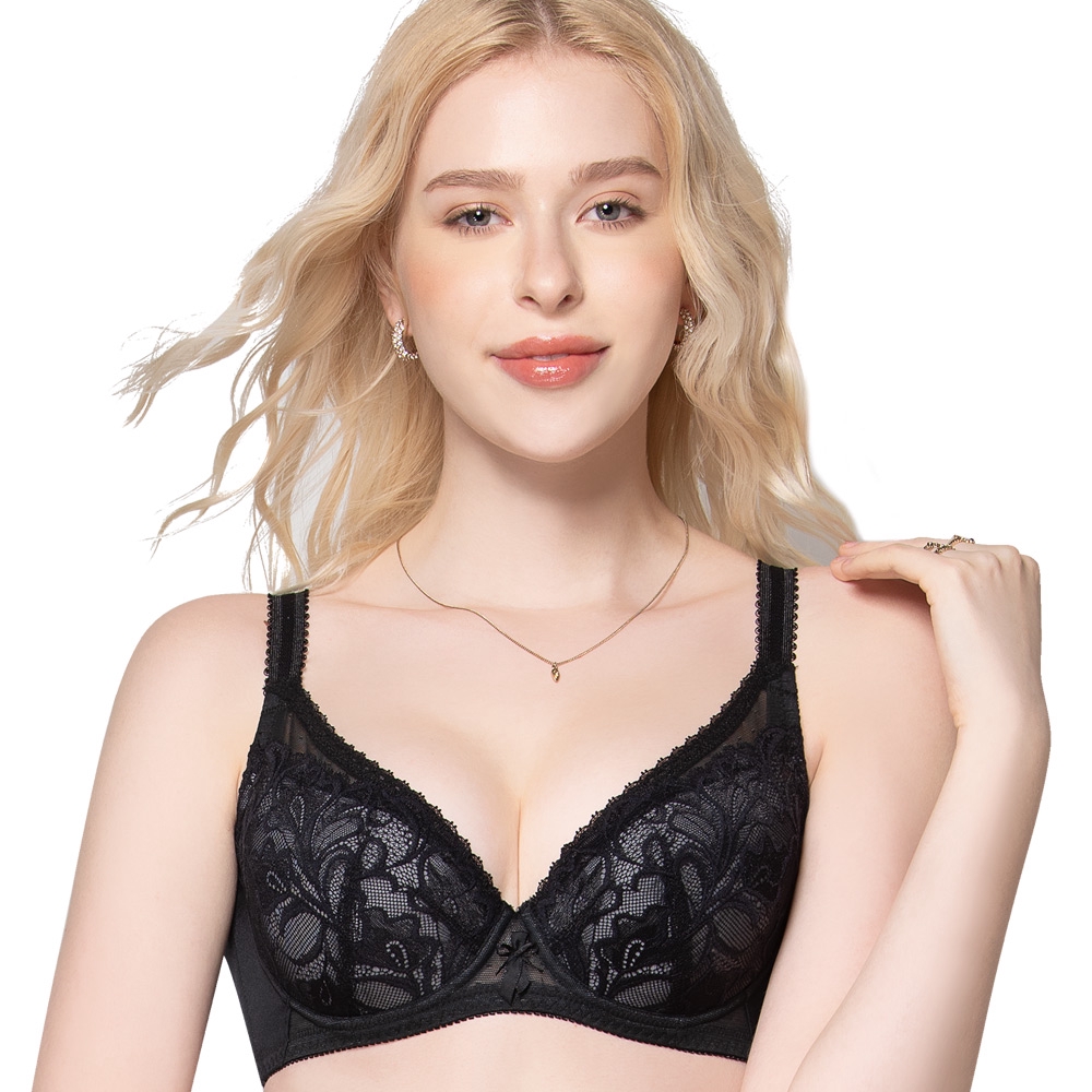 SWEAR 思薇爾 Hold波Bra系列C-H罩背心型蕾絲包覆大罩內衣(黑色)