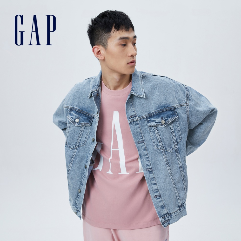 Gap 男裝 工裝寬鬆翻領牛仔外套-中度水洗(837107)