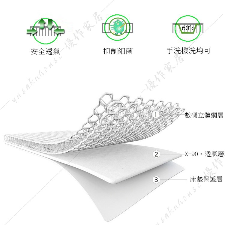 【優作家居】6D立體超透氣涼感可水洗涼蓆床墊 日本熱銷科技 床墊/散熱墊
