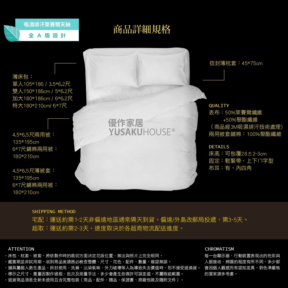 【優作家居】年華 天絲TENCEL萊賽爾 3M吸濕排汗處理 床包枕套組/被套床包組 台灣製造