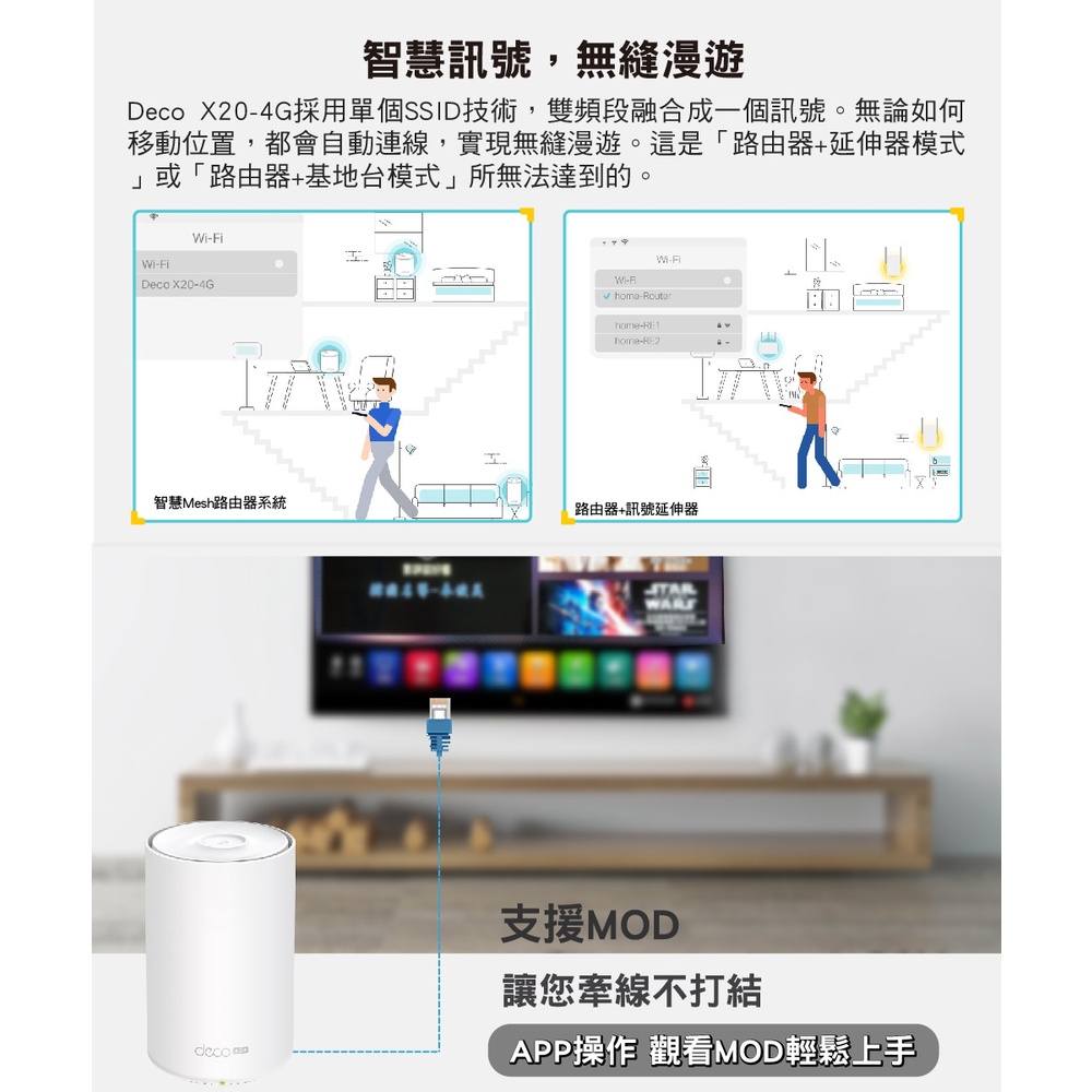 TP-LINK Deco X20-4G Mesh AX1800 網狀路由器 WIFI 6 4G+Gigabit 無線網路