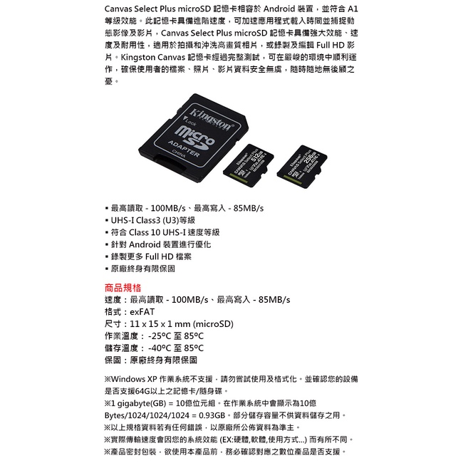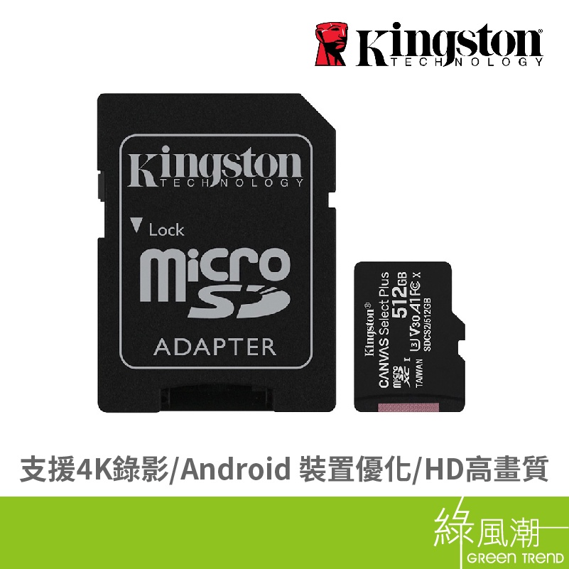 Kingston 金士頓 Micro 512G U3 C10 A1附轉卡 讀100MB 綠風潮