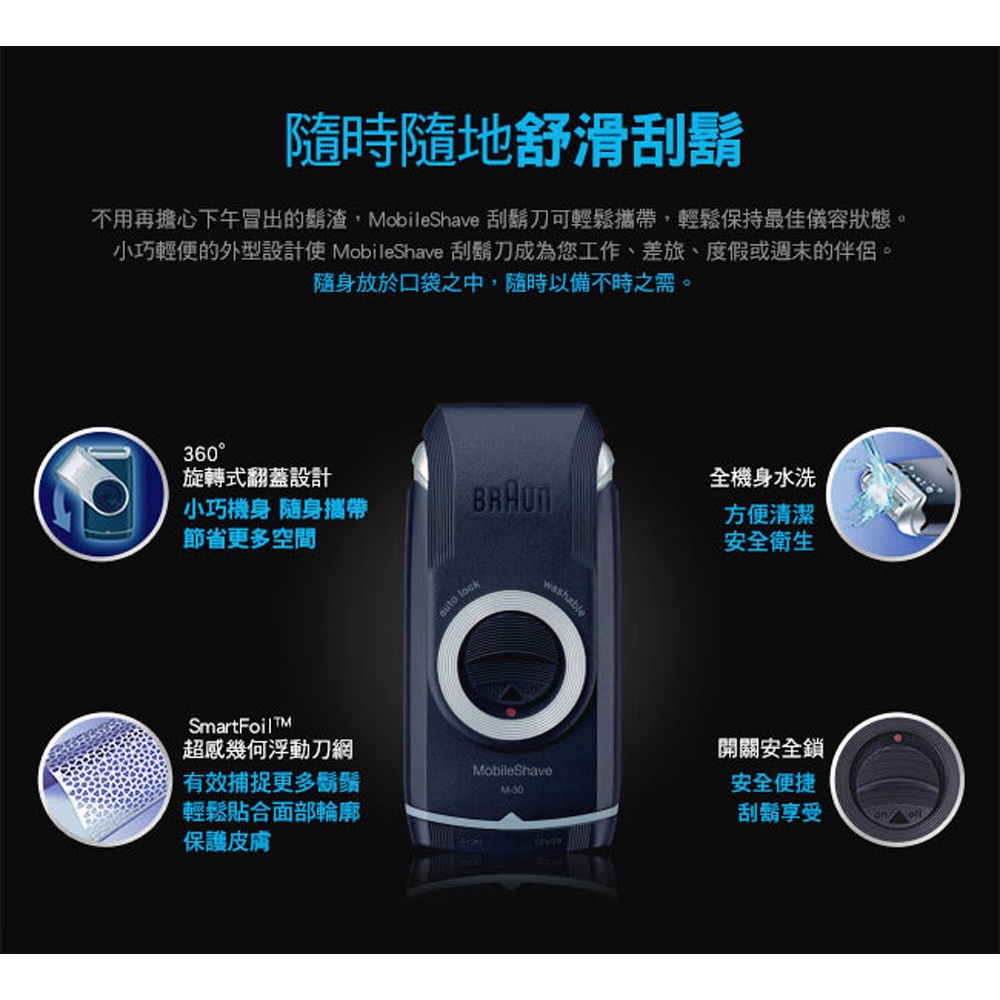 BRAUN 德國百靈 M30 電池式 輕便 電鬍刀 刮鬍刀 電動刮鬍刀 綠風潮
