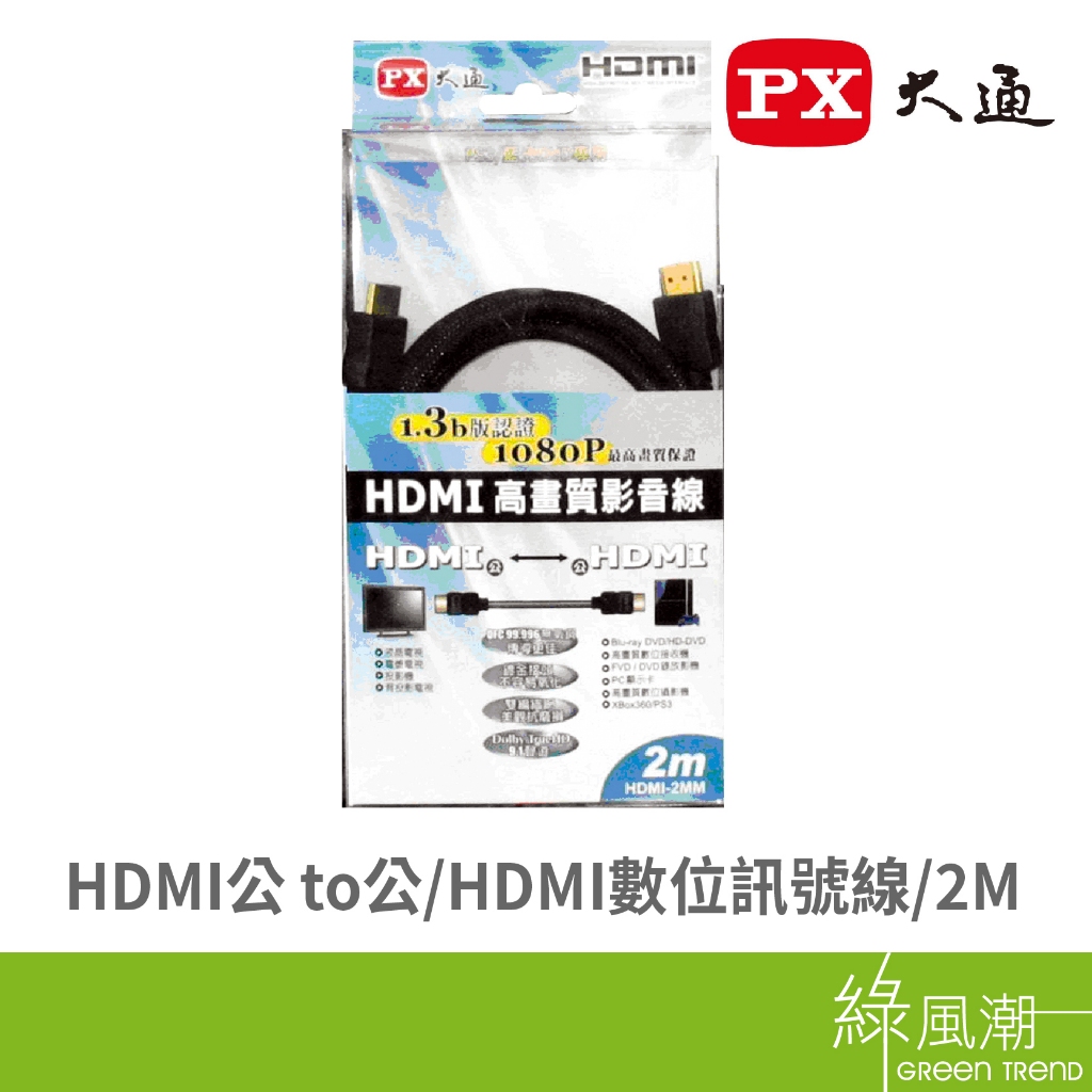 PX 大通 HDMI公 to HDMI公 視訊線 影像線 數位訊號線 2m 1080P 綠風潮
