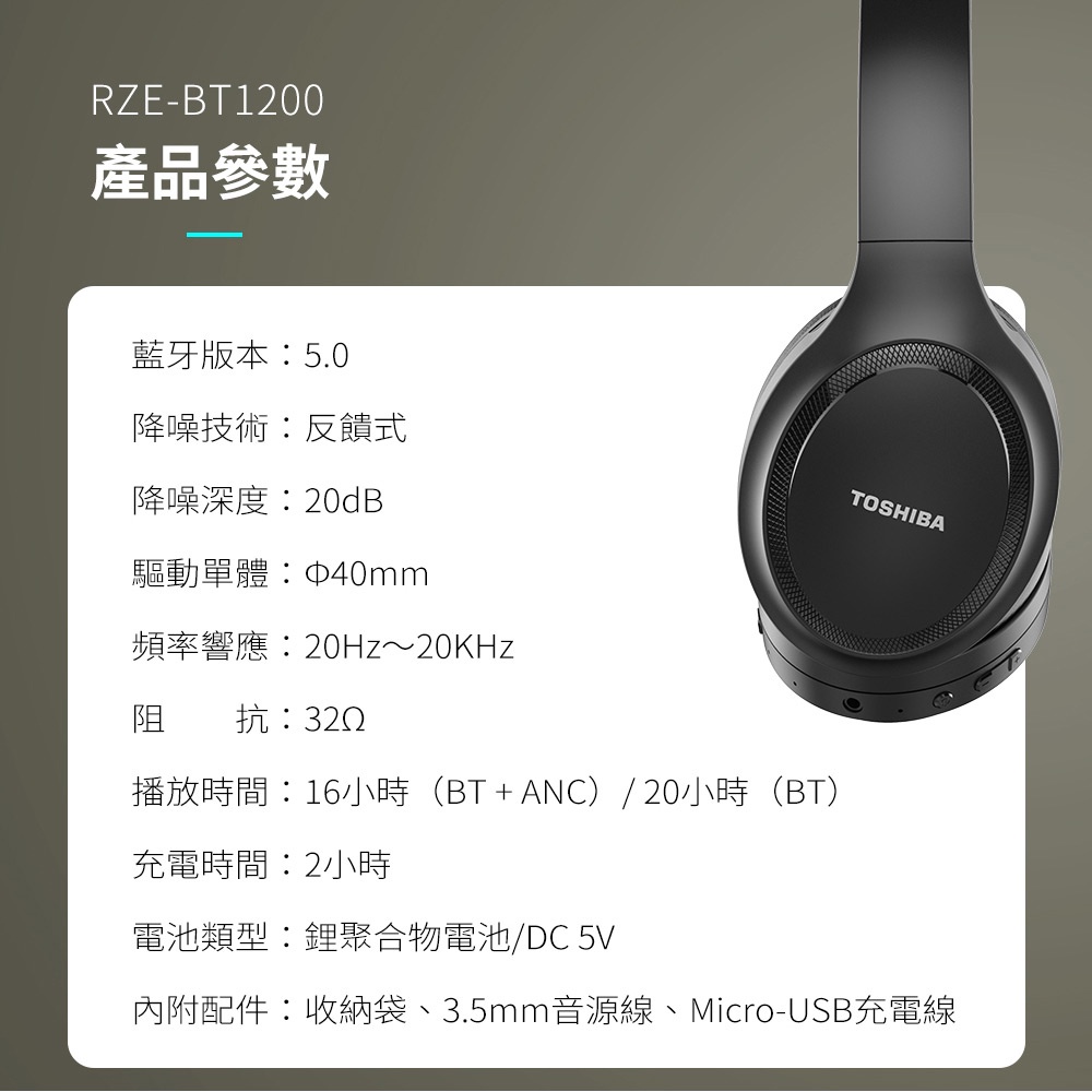 TOSHIBA 東芝 RZE-BT1200HB 主動式降噪無線藍牙 - 綠風潮