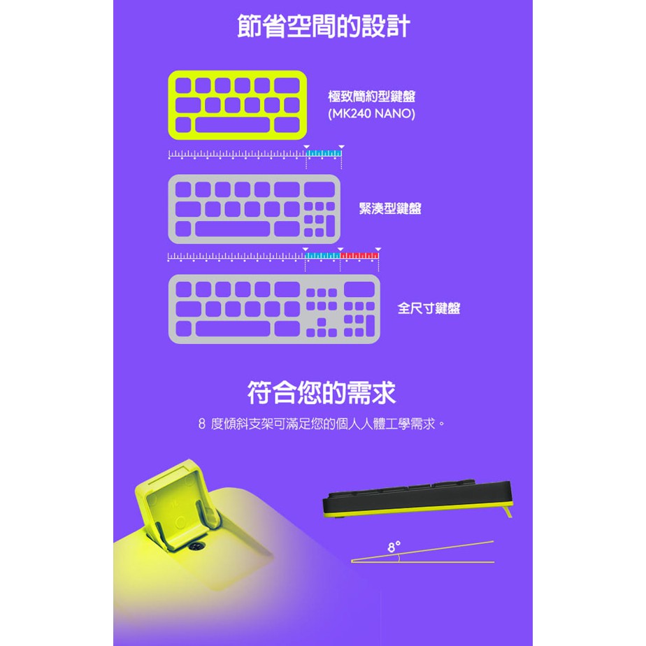 Logitech 羅技 MK240 鍵鼠組 無線鍵鼠 黑黃邊 綠風潮