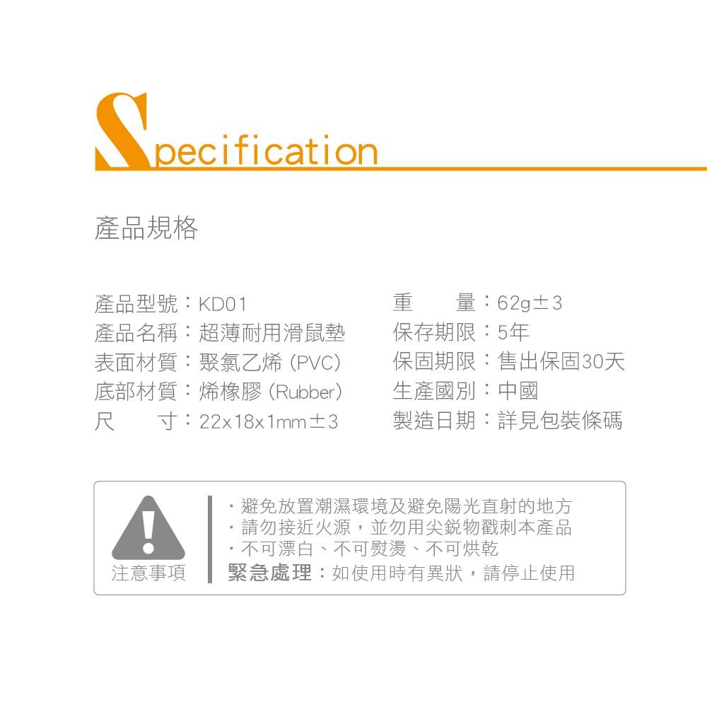 Link All KD01 舒適滑鼠墊 厚度0.1cm 可水洗 硬質 黑色 塑膠面 綠風潮