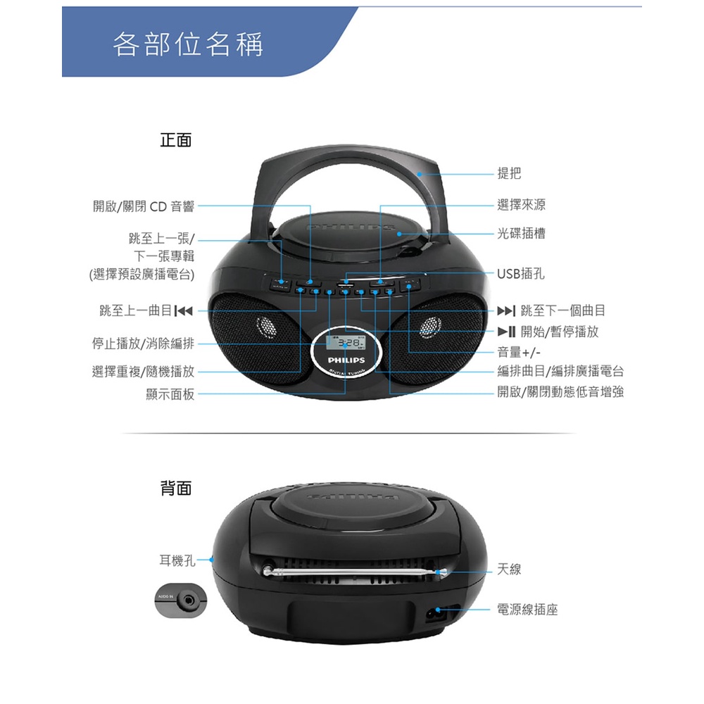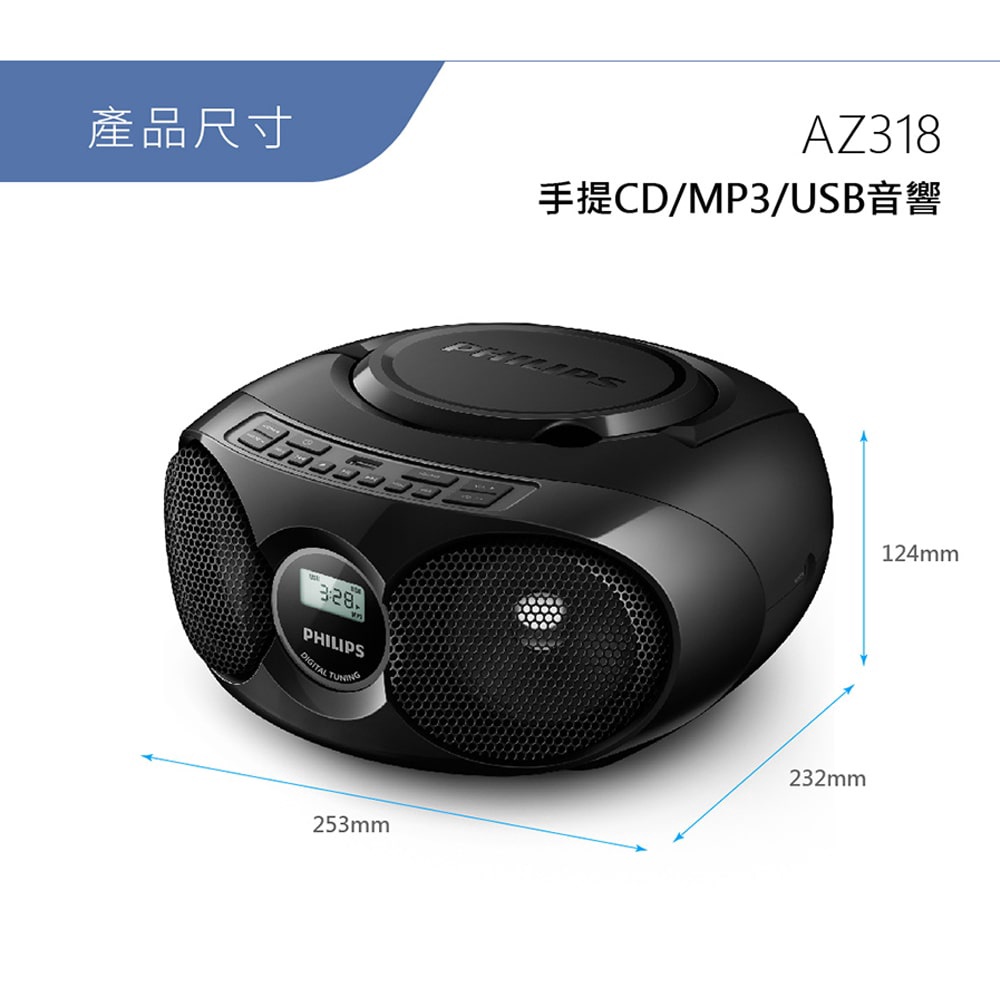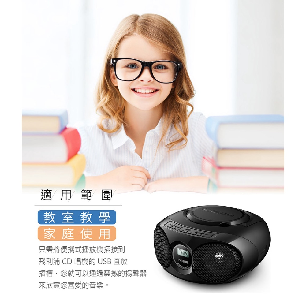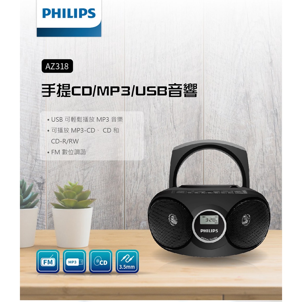 PHILIPS 飛利浦 AZ318B 手提 USB CD音響 綠風潮