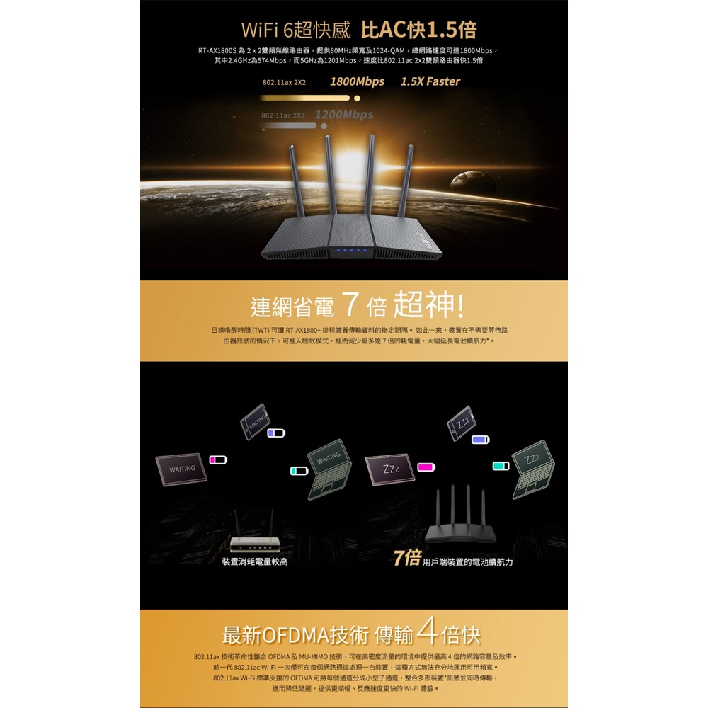 ASUS 華碩 RT-AX1800S AX1800 雙頻 WiFi 6 無線路由器- 綠風潮