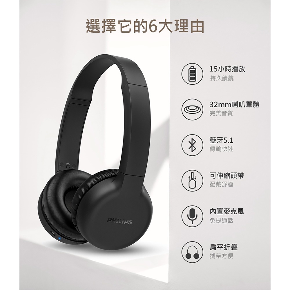 PHILIPS 飛利浦 TAH1205BK無線頭戴式藍牙耳機 綠風潮