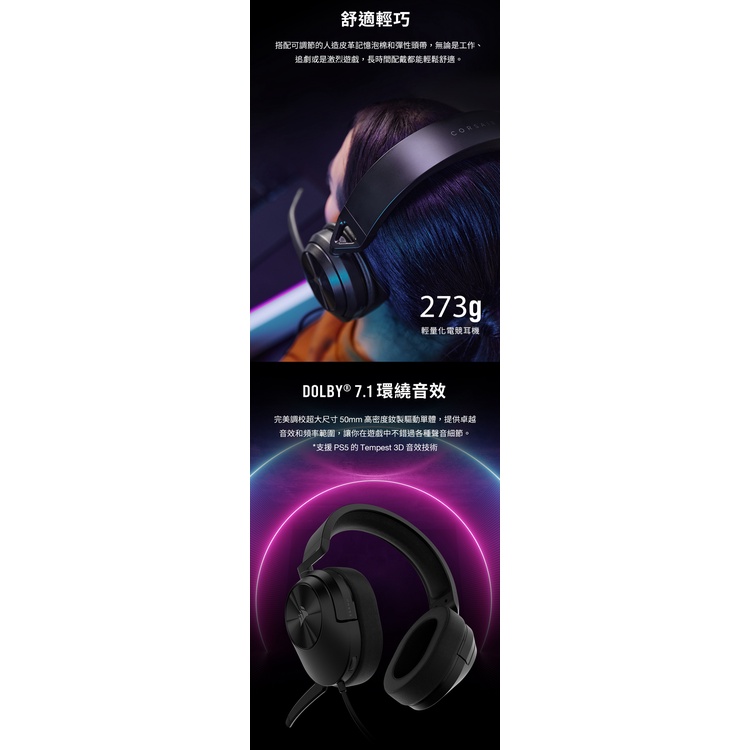 CORSAIR 海盜船 HS55 Surround 有線電競耳機(白) 綠風潮