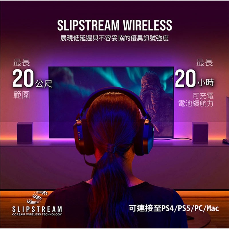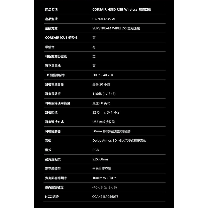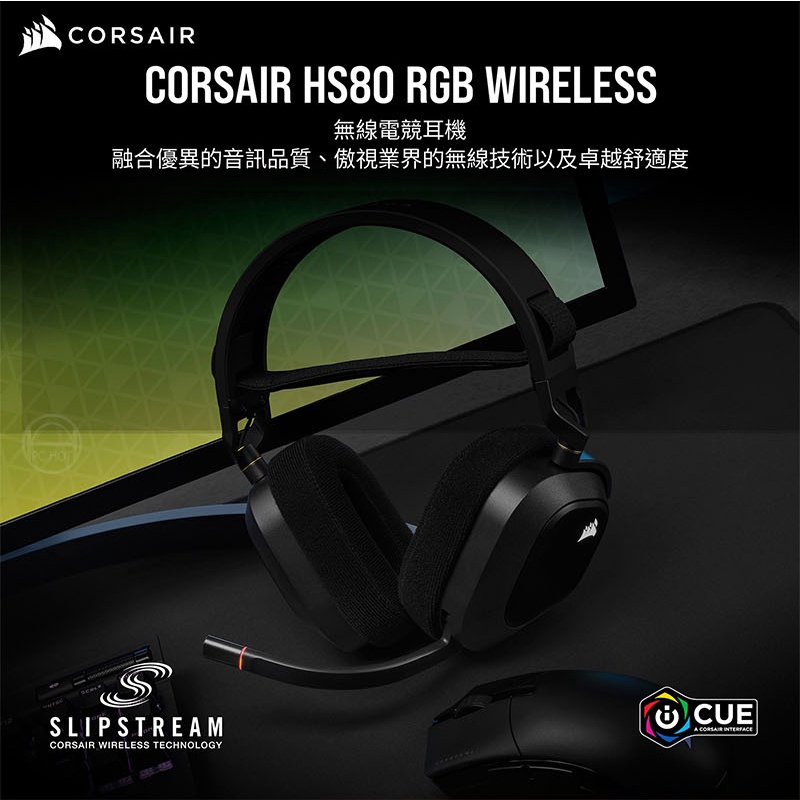 CORSAIR 海盜船 HS80 RGB 無線電競耳機(黑) 綠風潮