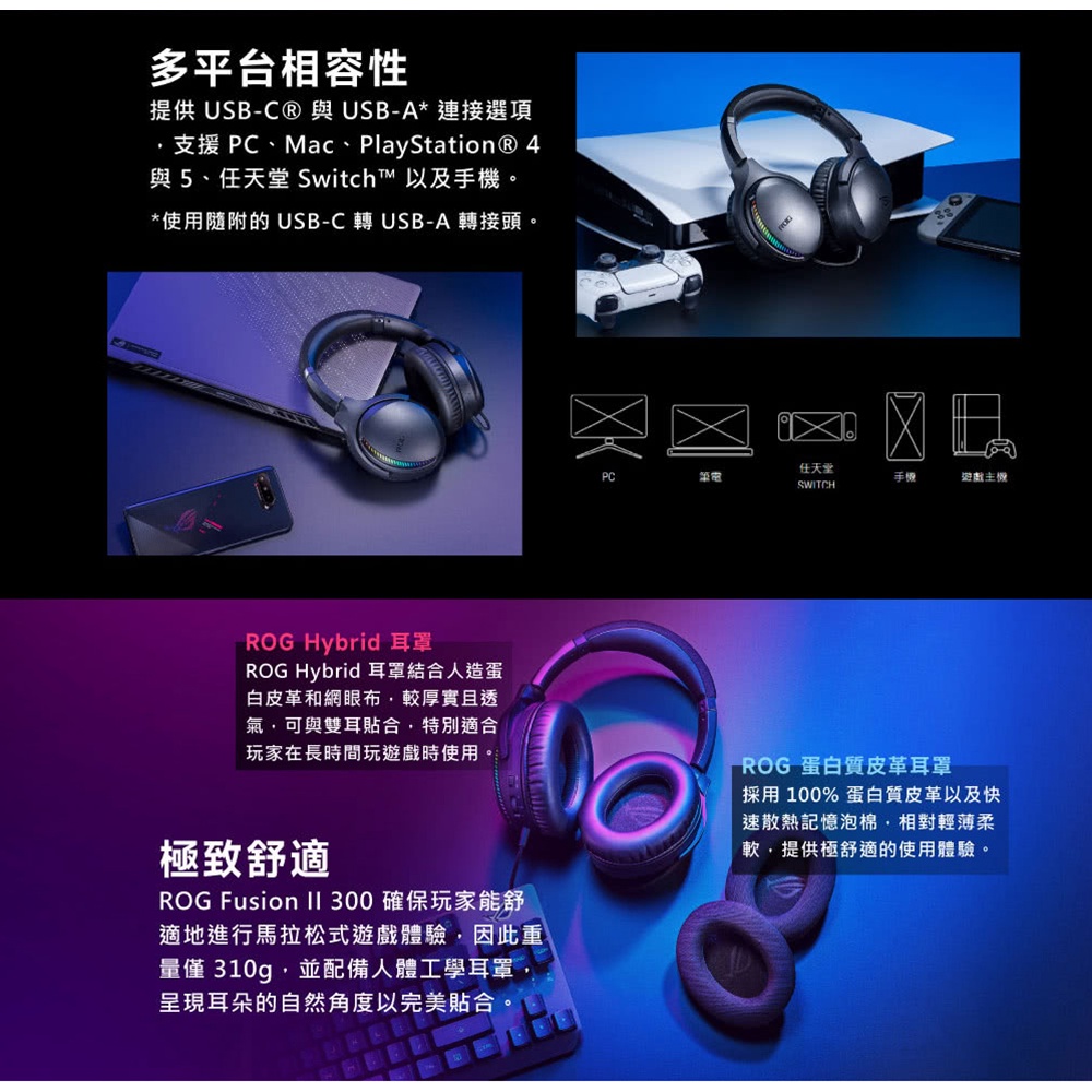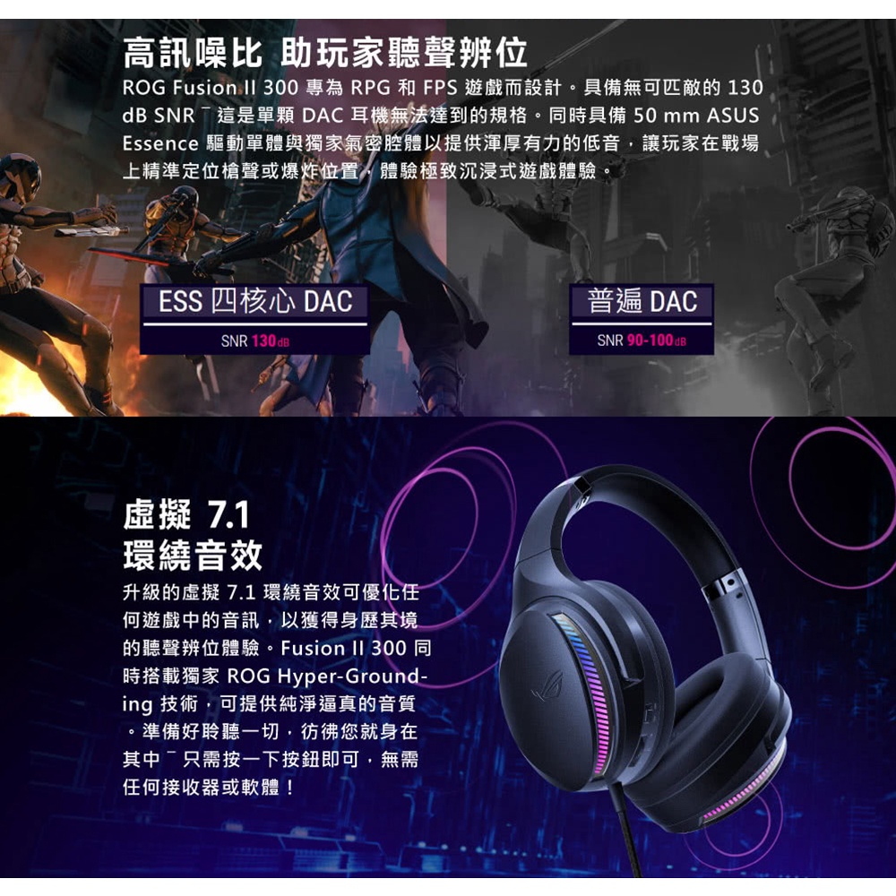 ASUS 華碩 ROG Fusion II 300 電競耳麥 綠風潮