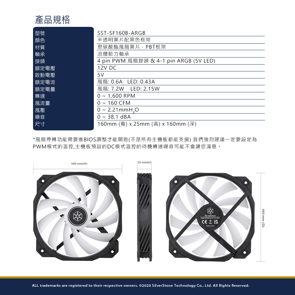 SILVER STONE 銀欣 Shark Force 160 ARGB 16cm PWM風扇 系統風扇類- 綠風潮
