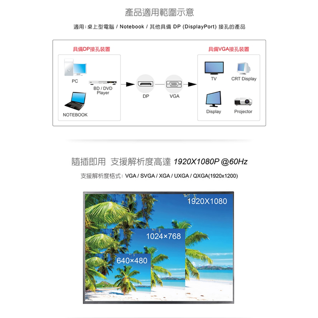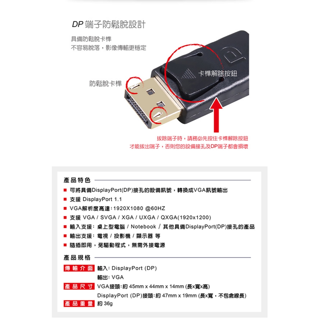 AN(DPTVGA) DP to VGA轉換器 綠風潮