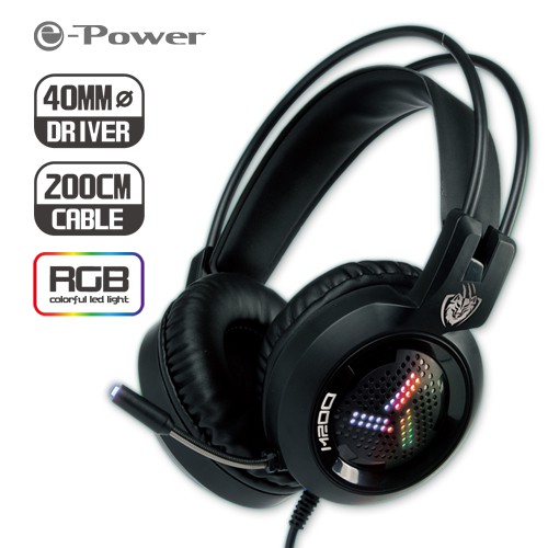 e-Power M200 遊戲型 耳機麥克風 RGB環繞 軟管麥克風設計 音控設計 黑色 綠風潮